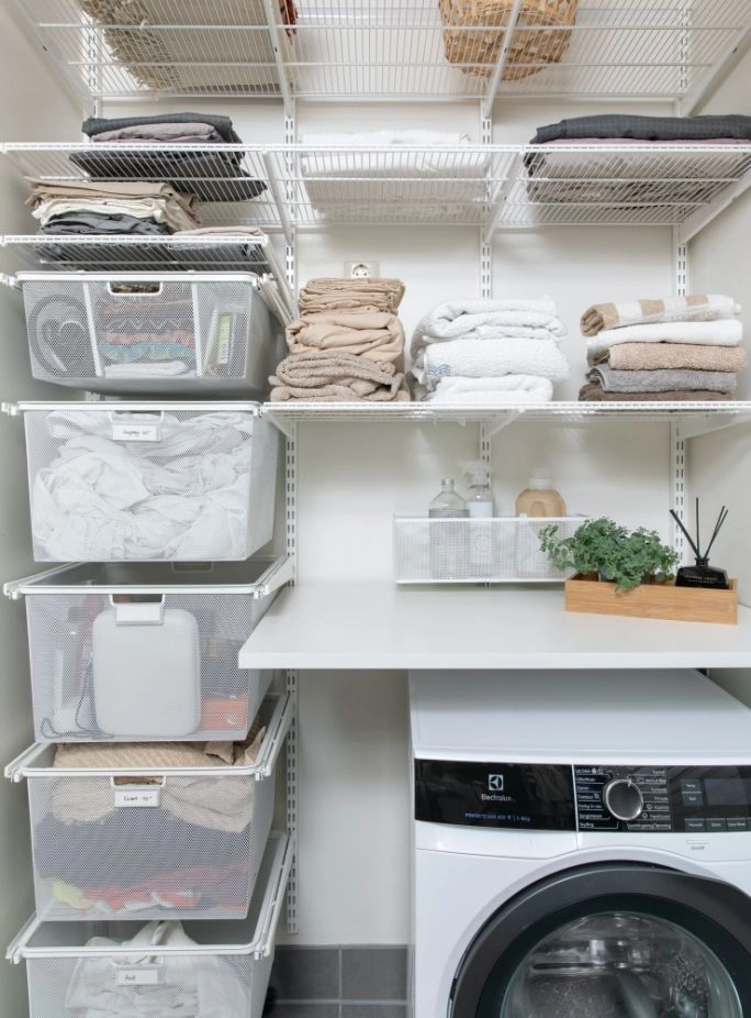 Gotowy system przechowywania Elfa dopasujesz do metrażu swoich pomieszczeń, zyskasz nową przestrzeń i z chęcią będziesz korzystać z garażu czy pralni. Mądrze zaprojektowane haki do rowerów, półki i kosze na pranie zdecydowanie ułatwią codzienne zadania domowe.