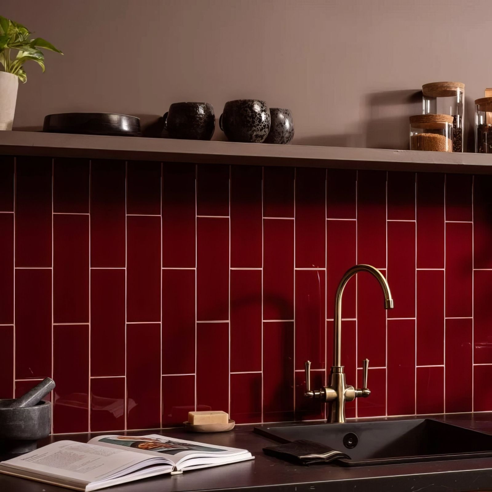 Wielkie formaty w 2026 roku ustępują miejsca mniejszym płytkom, a mat połyskowi. Za meblami lakierowanymi na wysoki połysk podążają płytki: pięknie szkliwione, gładkie lub z nierównymi krawędziami i drobnymi niedoskonałościami, które tworzą efekt subtelnego postarzenia.