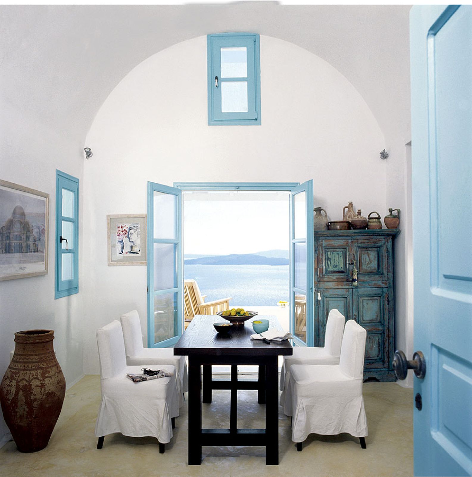 Urządzać dom w tym stylu jest łatwo i trudno zarazem. Łatwo, bo mamy konkretny zestaw kolorów (głównie biel i błękit), dokładamy bezpretensjonalne, proste meble, kilka waz i muszli, malujemy okna i drzwi na niebiesko i gotowe!