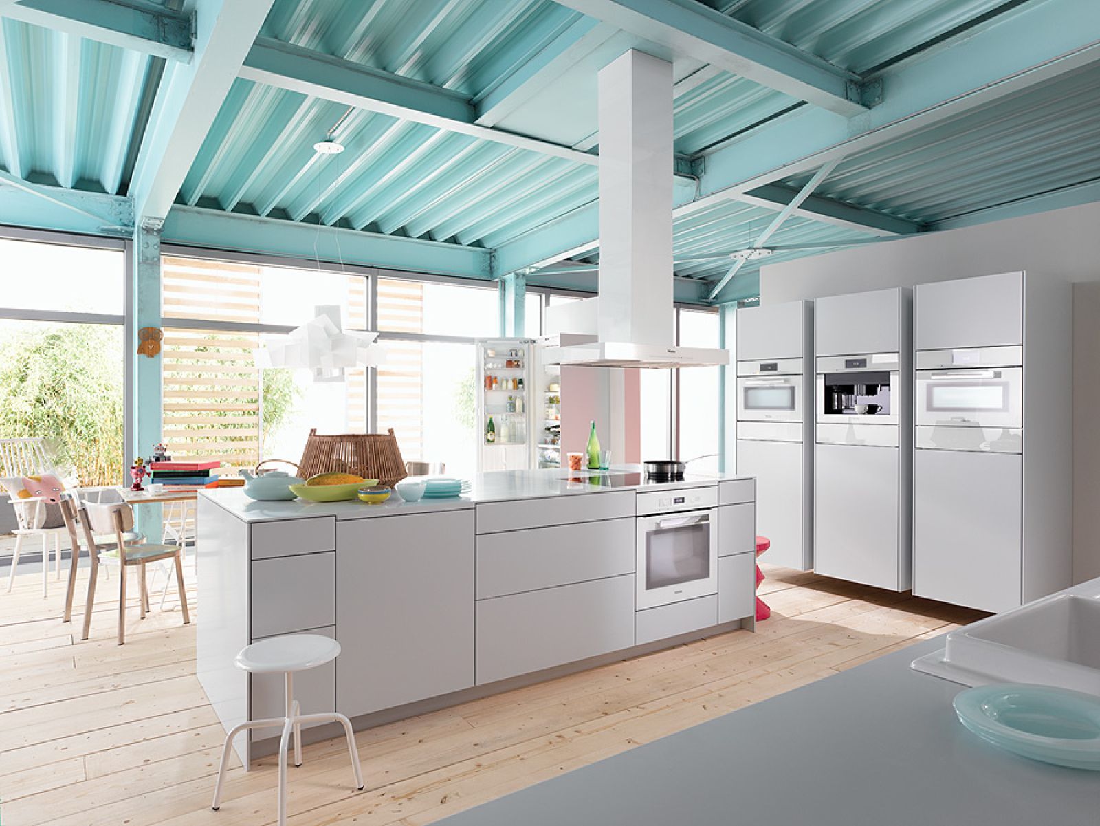 Do takiego zestawu dobrze pasuje kolorowe agd. Od małego (tutaj prym wiodą takie marki, jak Bosch – czerwony zestaw z robotem kuchennym, tosterem, krajalnicą i czajnikiem, Kitchen Aid – tostery retro i roboty Bodum – pistacjowe miksery i młynki do kawy w pomarańczach) po duży (kremowe piekarniki Franke, błękitne kuchenki Falcon). Hitem nadal pozostaje zielona kuchenka La Cornue, na której gotują takie sławy, jak Brad Pitt, Juliette Binoche czy Karl Lagerfeld.