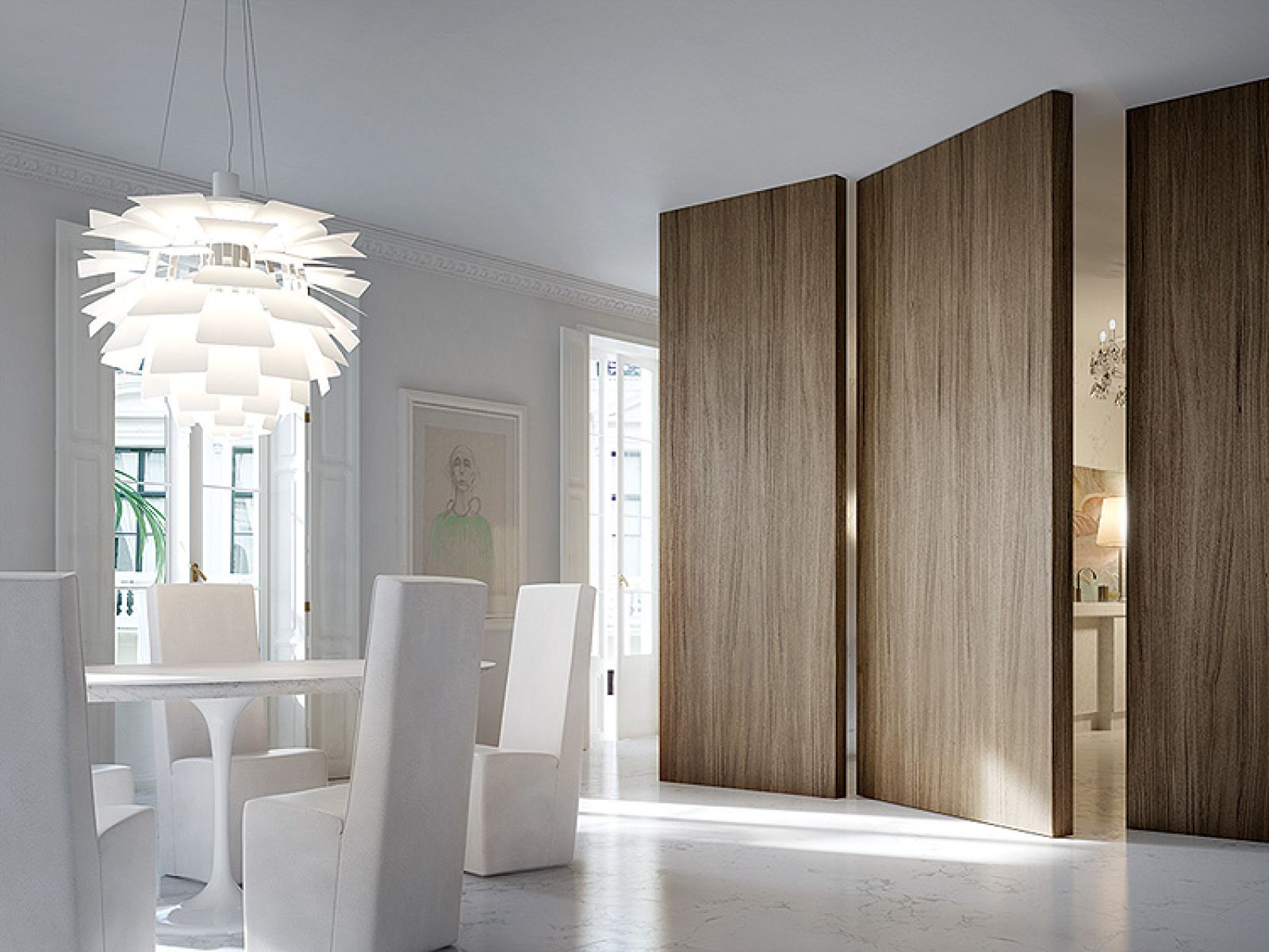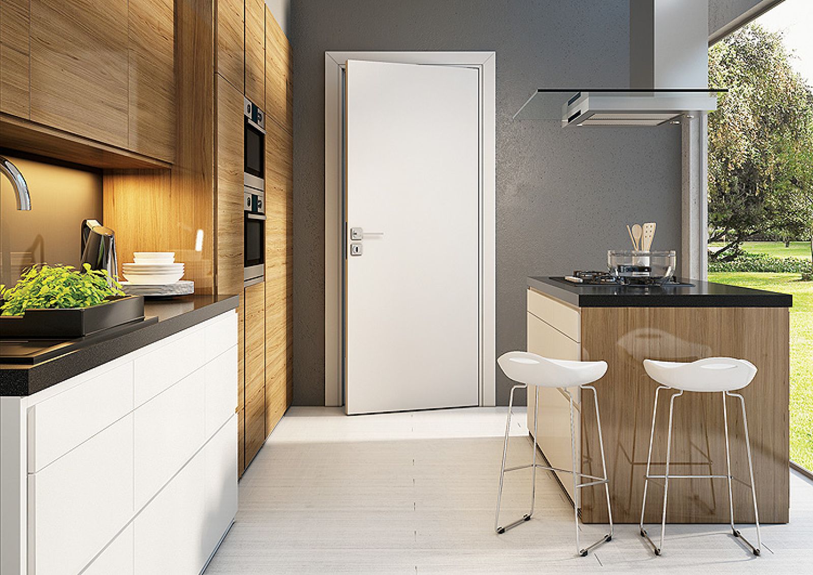 Drzwi wewnętrzne też są nie mniej pomysłowe. Te najmodniejsze idealnie wtapiają się w otoczenie. Firma Classen obłożyła je panelami, takimi samymi jak podłogę, dzięki czemu tworzą z posadzką idealną całość. Klimek i Kluś poszli o krok dalej i opatentowali drzwi ukryte – w modelu Paseo zrezygnowali z tradycyjnej framugi; jeśli pomalujemy je na kolor ściany albo wykleimy tapetą, będą niemal niewidoczne. Nie mówiąc już o propozycji marki L’Invi-sibile – lekko popychasz i coś, co wydawało się ścianą, uchyla się.