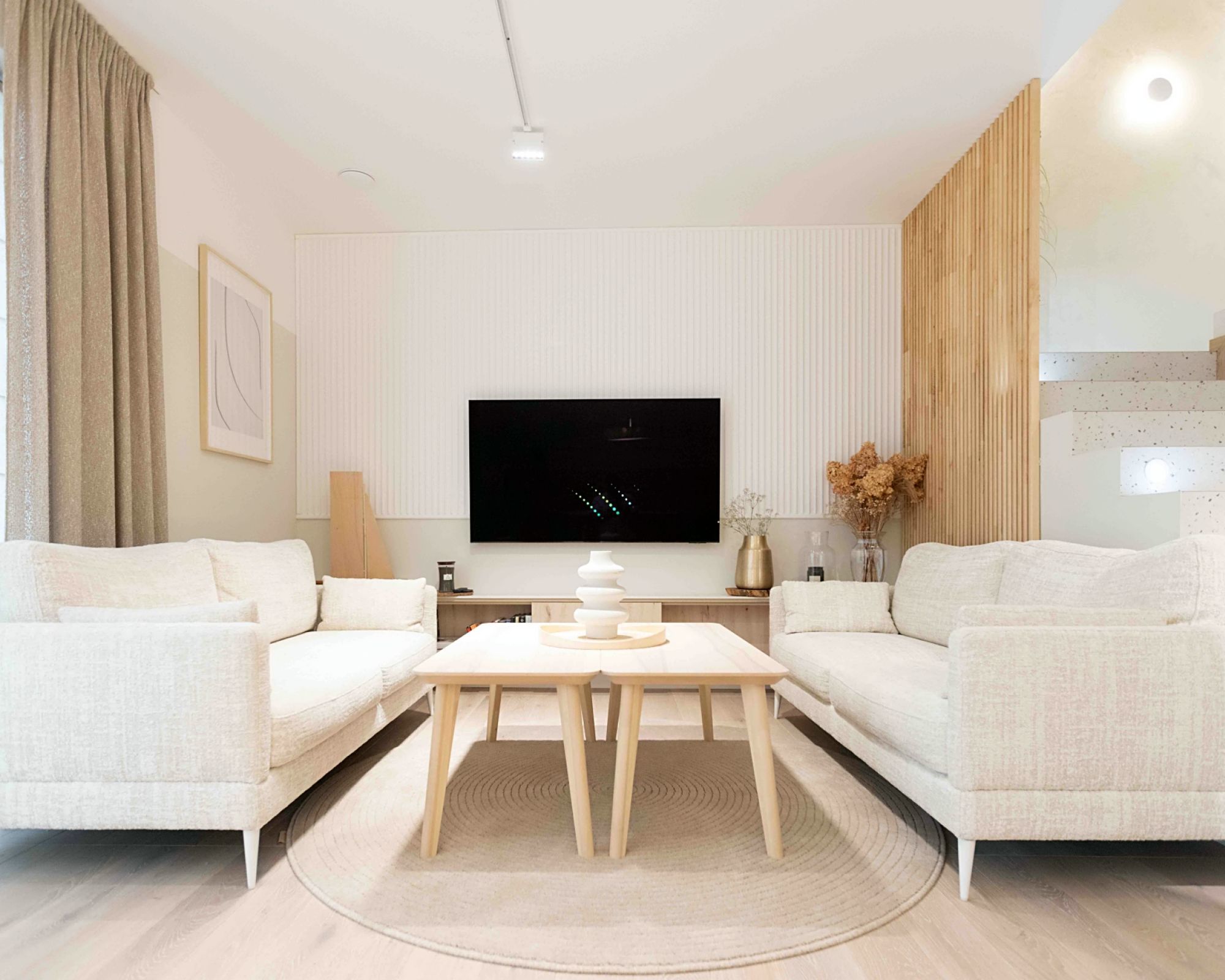 Ciepłe światło i miękkie linie – aranżacja przestrzeni na planie otwartym