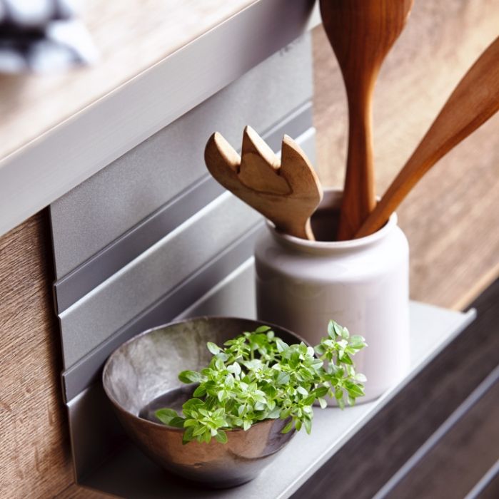 Nie kupujcie płytek z fakturą, bardzo porowatych – będzie wchodził w nie brud. Jeśli chcecie, żeby ściana nad kuchenką była łatwa w utrzymaniu czystości, wybierzcie na ścianę szklaną płytę. Zamiast tapety (którą oczywiście można położyć w kuchni, ale jak najdalej od strefy przygotowywania posiłków), dobrą alternatywą jest okładzina. Tutaj możemy zaszaleć – na rynku jest mnóstwo okładzin z przeznaczeniem do kuchni, warto wybrać tęm którą wyróżnia wysoka jakość.