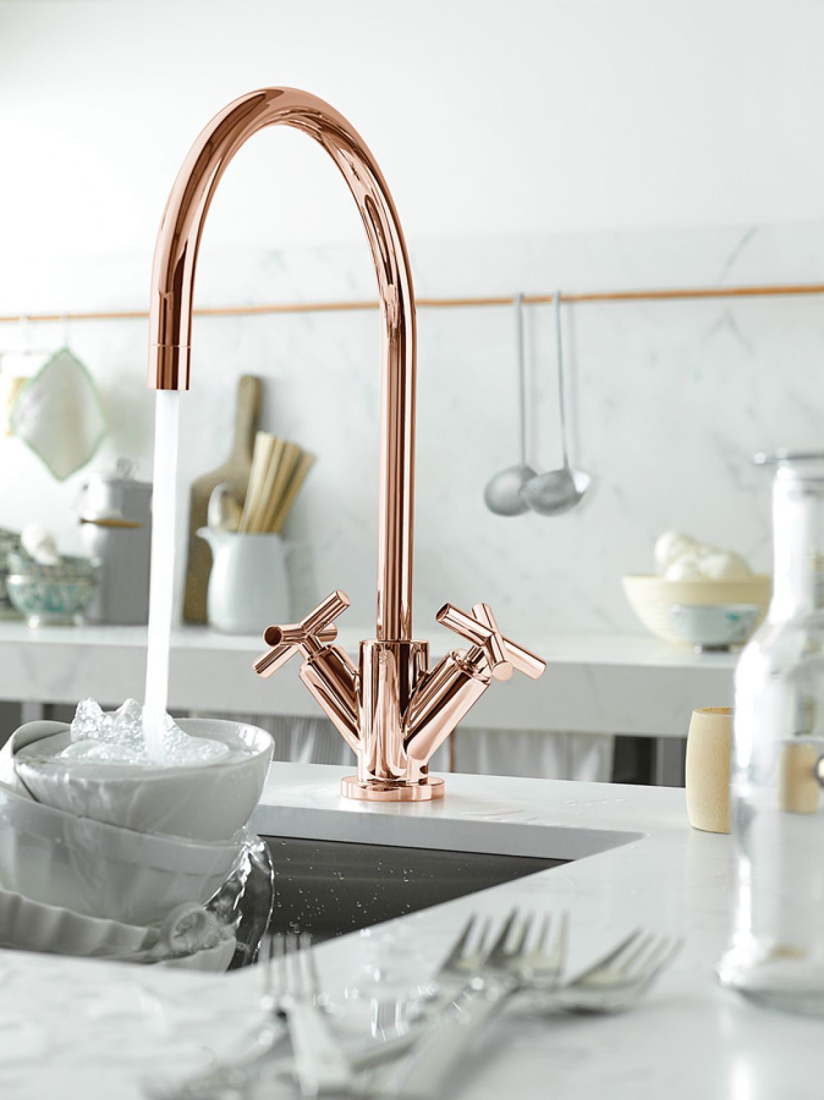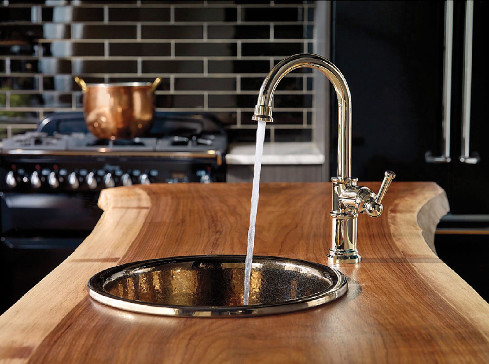 Zwolennicy etno sięgną po zlew miedziany. Wygląda, jakby przyjechał z marokańskiego bazaru, ale powstał we włoskiej firmie Brizo (jest ręcznie młotkowany). Dopasowano do niego baterię jak z ubiegłego wieku. Ale niech was nie zmyli forma. Za klasyką kryją się nowoczesne technologie – ochronne powłoki, kosmiczne materiały czy patenty, które ułatwiają życie.
