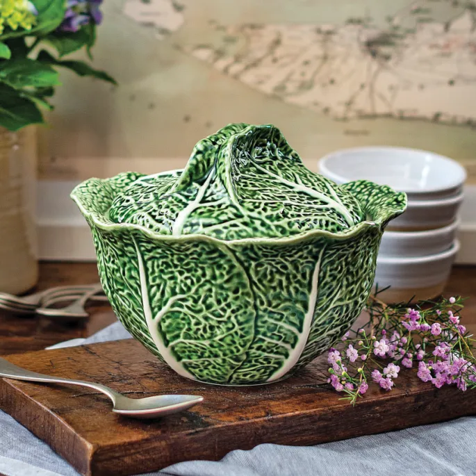 Zupa w kapuścianej wazie, makaron na liściu sałaty, dzbanek z porcelanowych liści bananowca, salaterki jak czerwone pomidory, miseczka na hummus i inne warzywne pasty w kształcie bakłażana, pojemnik na małe przekąski w formie papryki. Warzywa z porcelany wyglądają równie apetycznie jak serwowane potrawy.