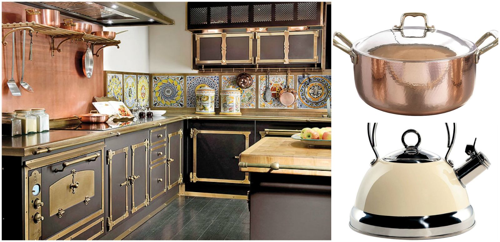 Tak inteligentny sprzęt można dopasować do każdego stylu kuchni – od pałacowych po skandynawskie. To samo dotyczy małego AGD oraz naczyń. Garnek, który ma zintegrowany z pokrywką cedzak, znajdziemy w stylistyce retro, która zresztą nie schodzi ze sceny. Mosiężne okucia, pastelowe fronty szafek czy miedziane akcenty przywołują stare, dobre czasy sprzed wynalezienia elektroniki. Patelnie pokrywa się dzisiaj nowymi powłokami, które zawierają ceramikę i minerały ,po to, by potrawy smakowały jak najbardziej naturalnie, jak za dawnych lat. Kto wie, może w naszej zbiorowej pamięci tkwią jeszcze smaki placków wypiekanych na rozpalonych kamieniach. Nad odtworzeniem tych doznań kulinarnych pracują zastępy naukowców XXI wieku…