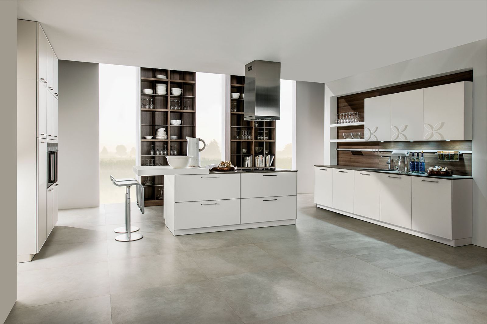Możesz wybrać piekarnik kompaktowy z mikrofalówką i szufladą do podgrzewania, stalowy zlewozmywak z baterią, płytę indukcyjną, która rozpozna wielkość garnka. I koniecznie sterowany dotykowo okap, jednocześnie... lampa. Kolor? Stalowy z dodatkiem czarnego, choć kuszący jest też szampański. Ale nie tylko wygląd jest ważny. Kiedy skończymy przygotowanie kolacji, wyspę kuchenną zamienimy w przekąskowy bufet. Okap schowa się pod blat, zlew przykryjemy specjalnymi deskami, nawet waga kuchenna przejdzie szybką metamorfozę. Szklaną, płaską możemy podświetlić (tak, jest taka opcja!) i używamy jej jak tacy, bardzo gadżeciarskiej.