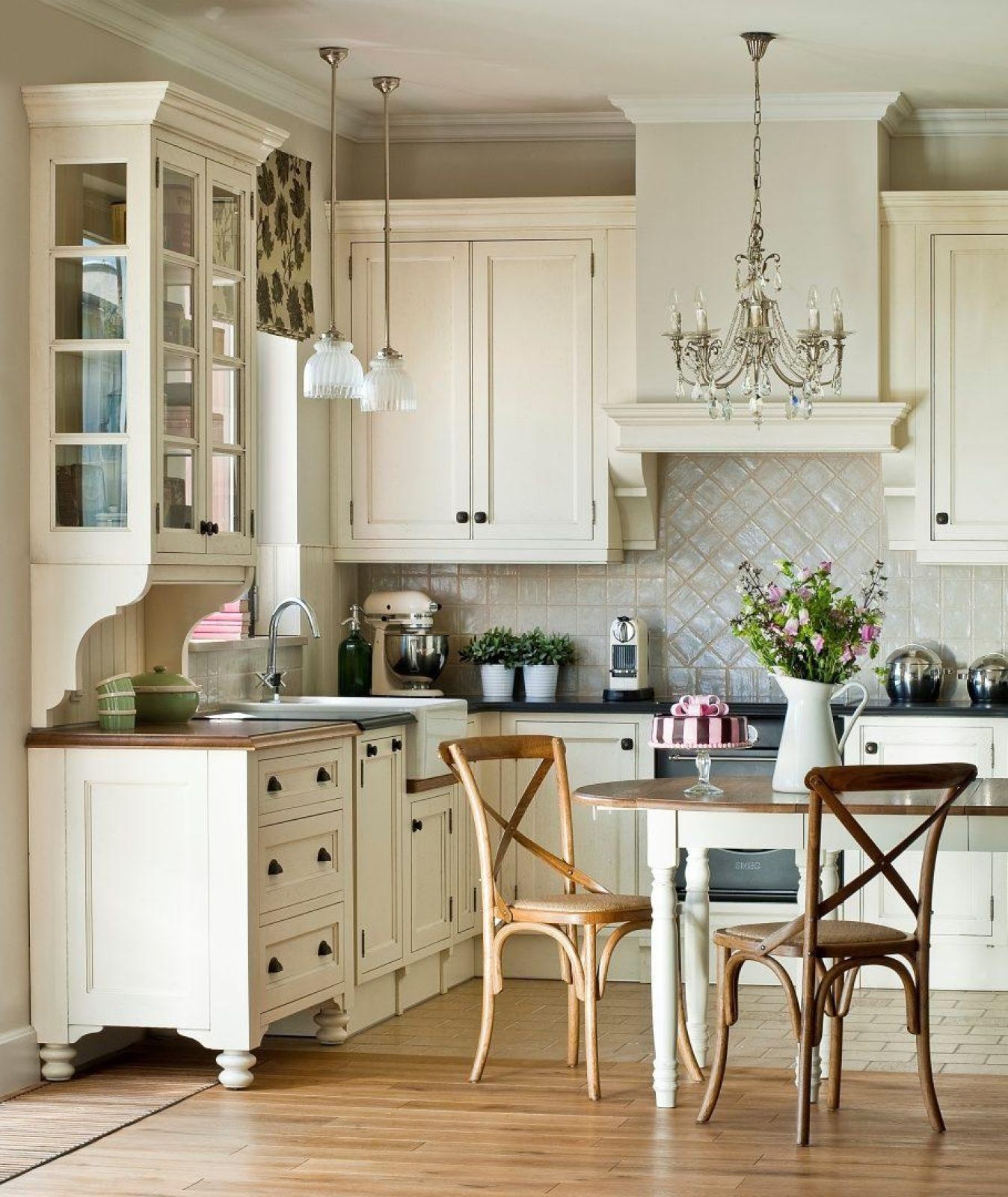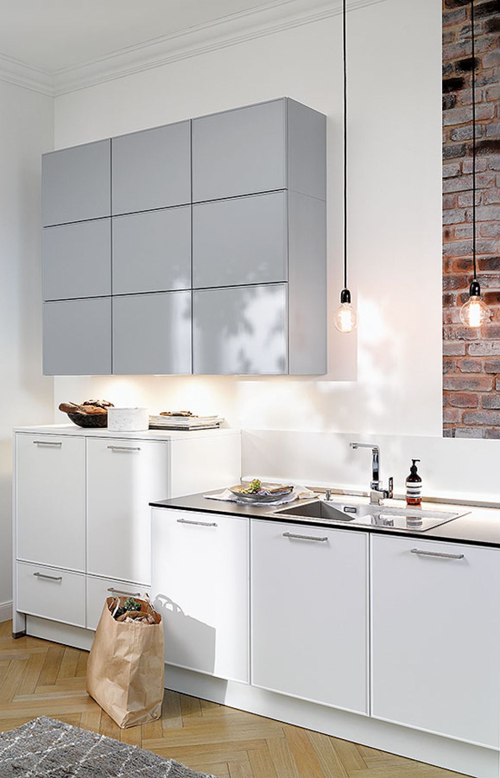 Ostatnio coraz cześciej rezygnuje się z górnych szafek, po to by zastąpić je ciekawie zaaranżowaną ścianą, ozdobioną ładnie oprawionymi plakatami, galerią rodzinnych zdjęć, lżejszymi półkami, witrynkami stawianymi na blacie albo oryginalnie położonymi kaflami. Na podłodze kładzie się dywan lub chodnik, a miejsca do przechowywania szuka w się wolnostojących meblach typu witryna, bufet czy ażurowy regał.