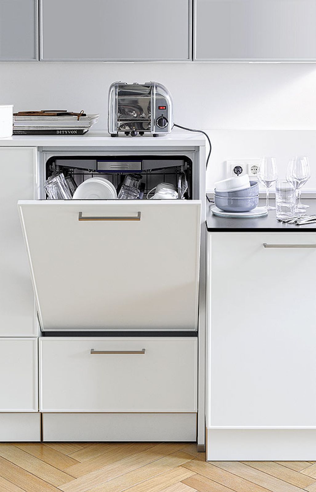 Droższe rozwiązania proponuje niemiecki producent, firma Häcker. W ofercie znajdziesz m.in. sideboardy, które można łączyć z 66 wersjami frontów i 4 wariantami nóg. Salonowy charakter wprowadzają proponowane przez nich regały z wysuwanymi głębokimi szufladami oraz wiele wzorów uchwytów i listew do kuchni bezuchwytowych.