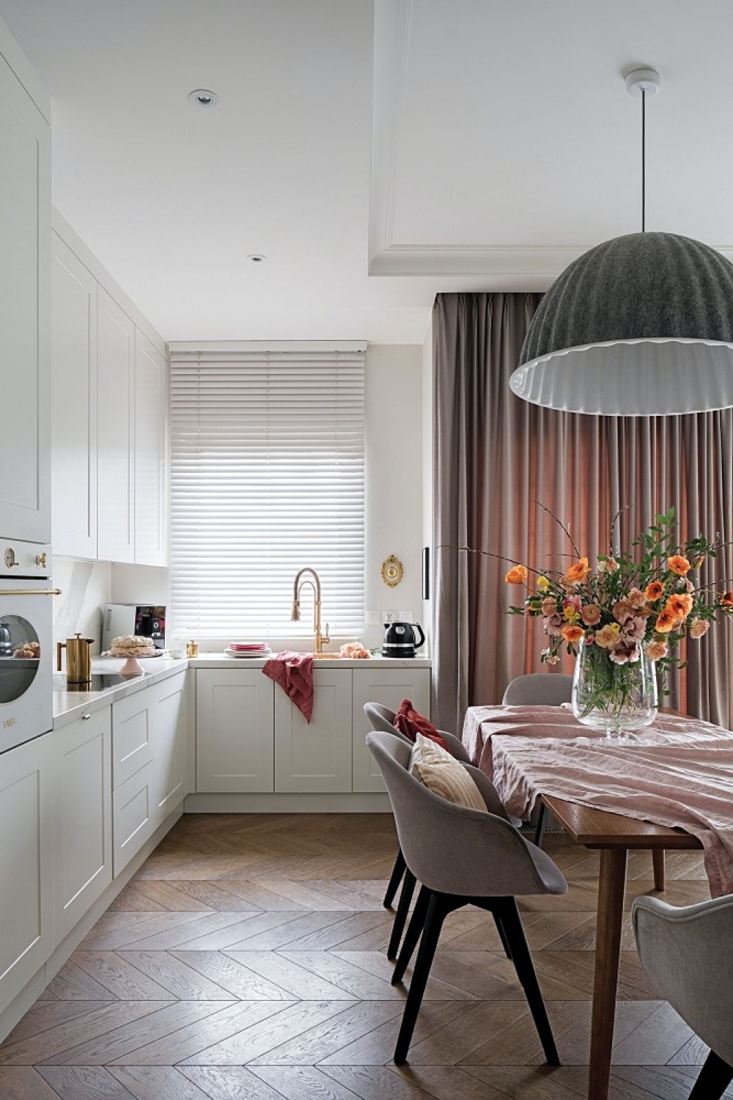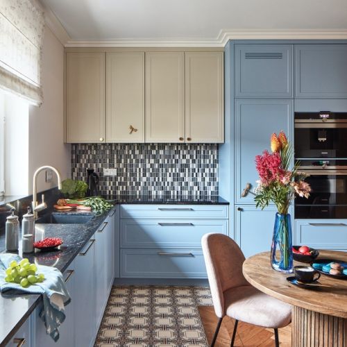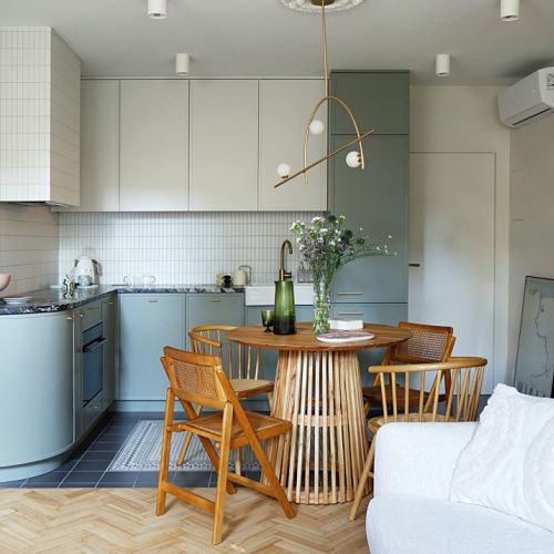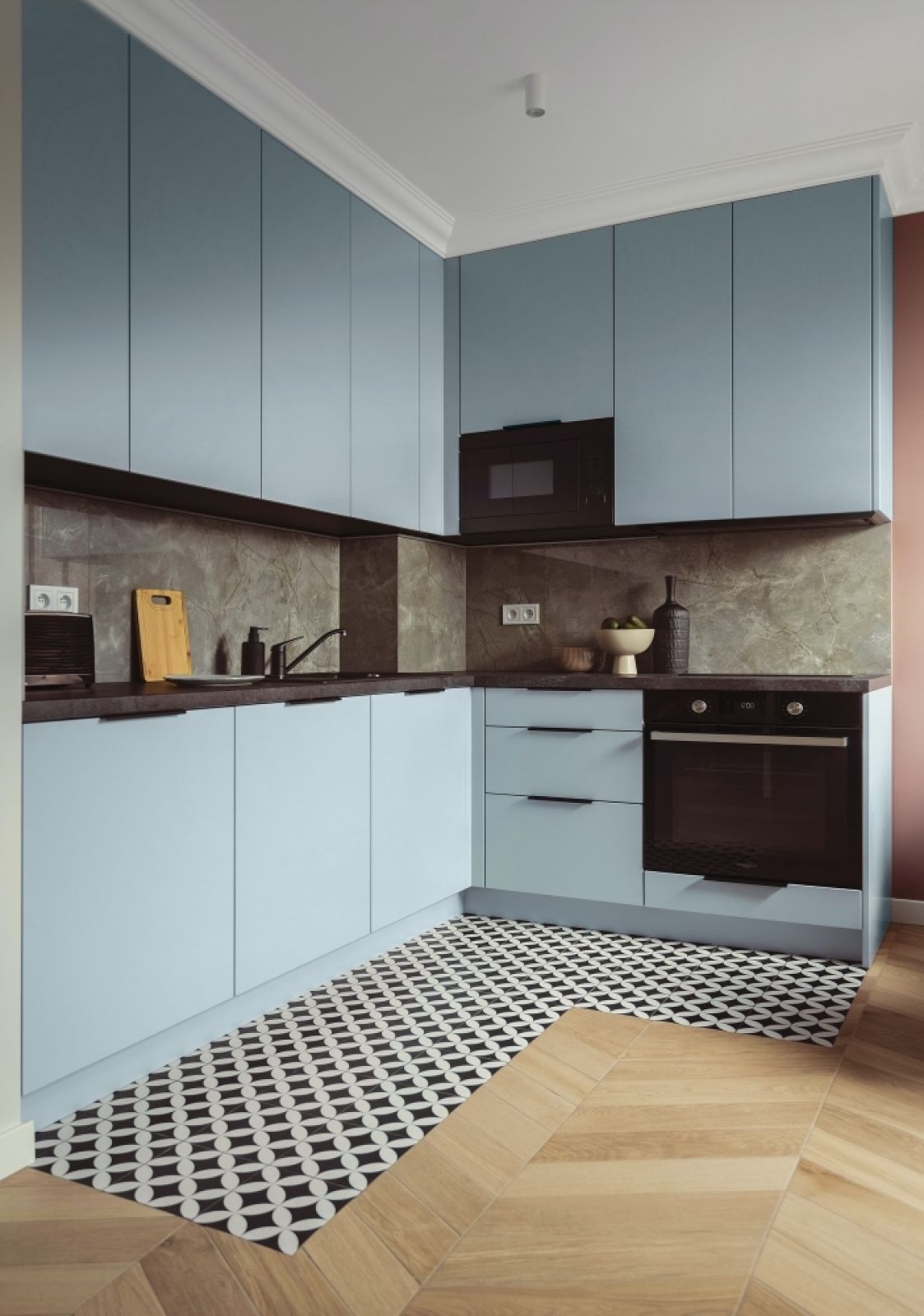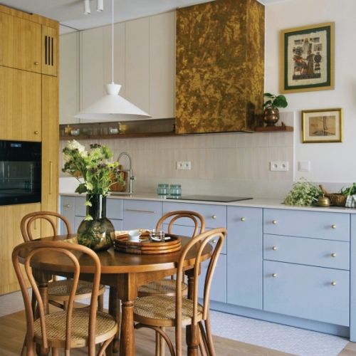 W nowoczesnych i eklektycznych mieszkaniach meble do kuchni mogą być ciekawym akcentem przełamującym stonowaną kolorystykę salonu. Mogą nawiązywać do odcienia tapicerki czy innych mebli w salonie. Ważne jednak, by za mocno nie wybijały się z całości. By były akcentem, który ożywia przestrzeń, ale nie zdominowały całej aranżacji wnętrza.