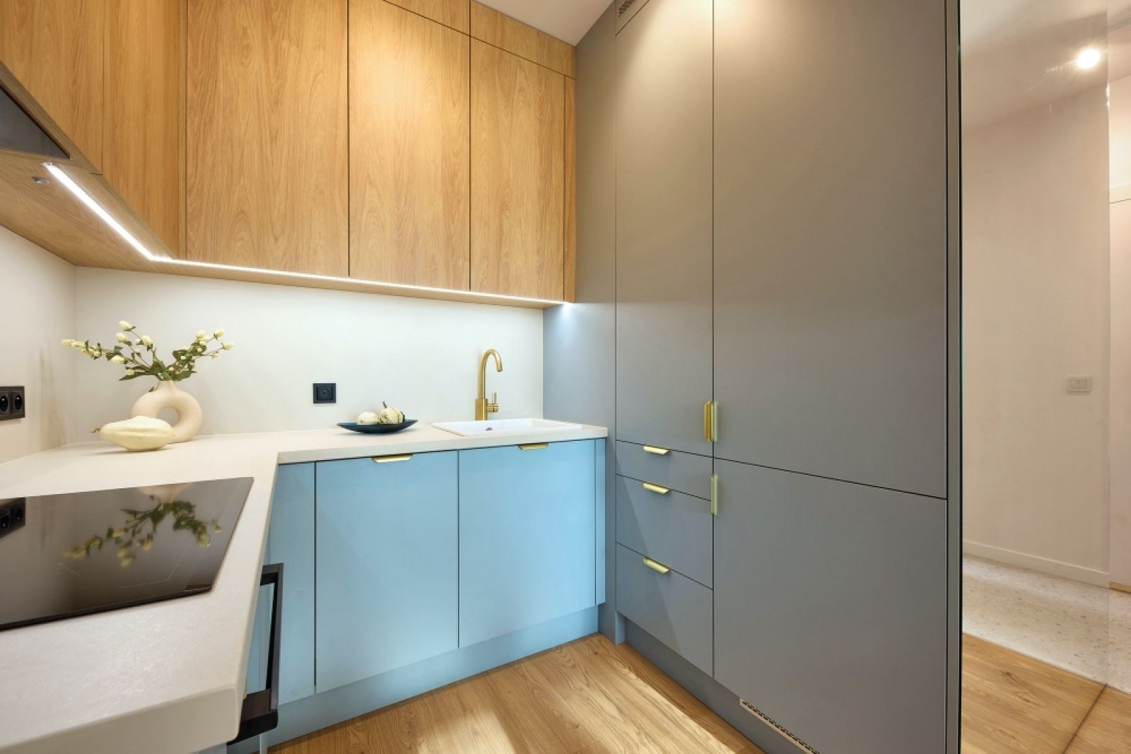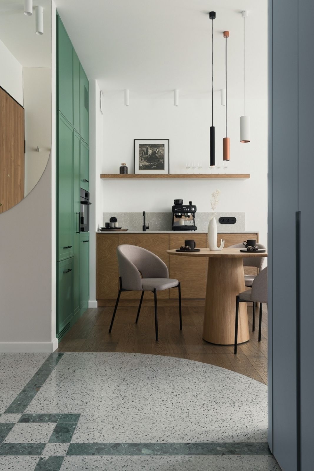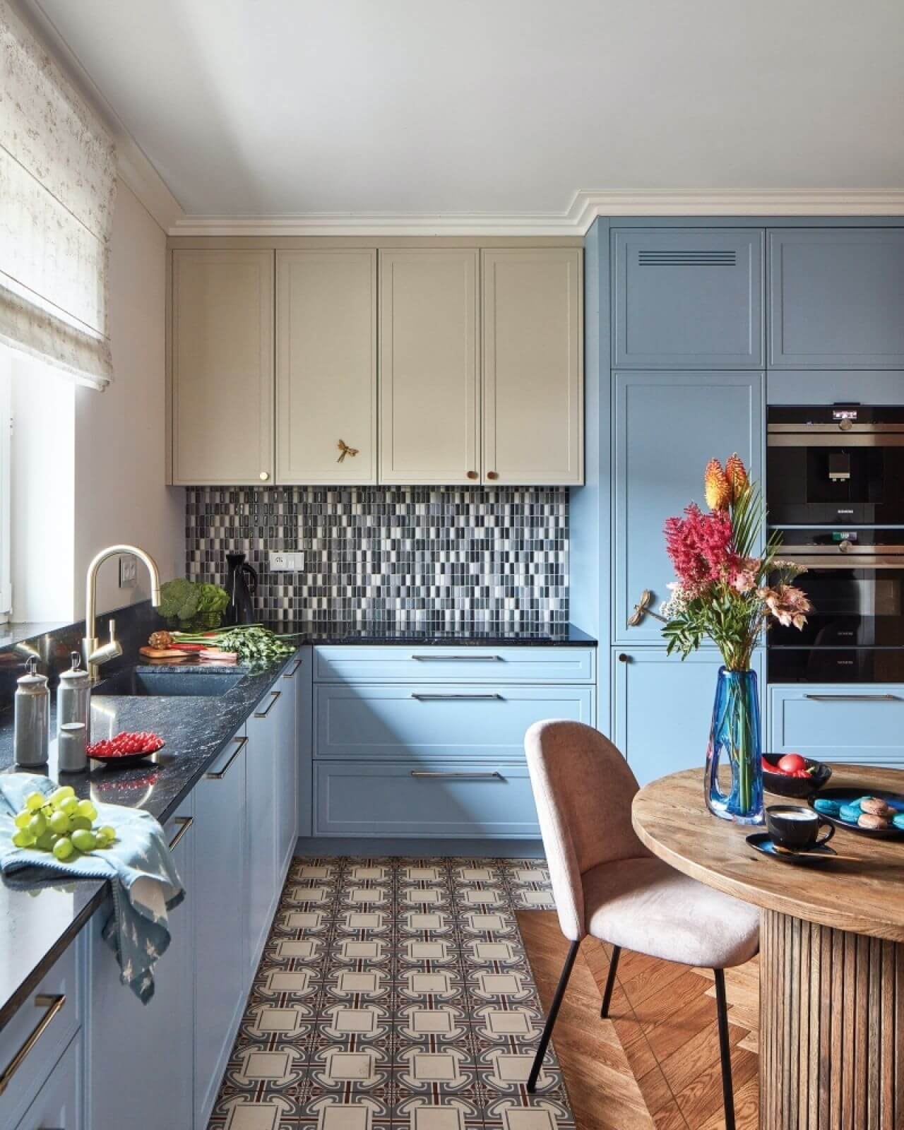W nowoczesnych i eklektycznych mieszkaniach meble do kuchni mogą być ciekawym akcentem przełamującym stonowaną kolorystykę salonu. Mogą nawiązywać do odcienia tapicerki czy innych mebli w salonie. Ważne jednak, by za mocno nie wybijały się z całości. By były akcentem, który ożywia przestrzeń, ale nie zdominowały całej aranżacji wnętrza.