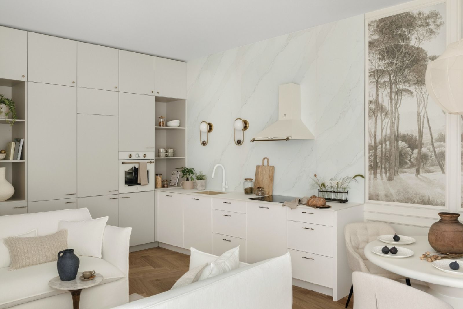 Jak w przypadku każdej otwartej kuchni, warto zadbać o stylistyczną spójność. Kuchnia musi ładnie wpisywać się w wystrój salonu i tworzyć z nim ładną całość.