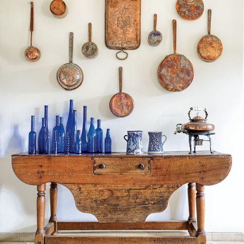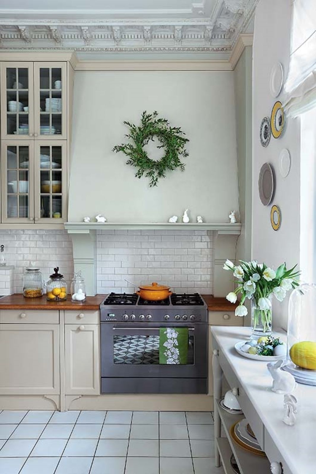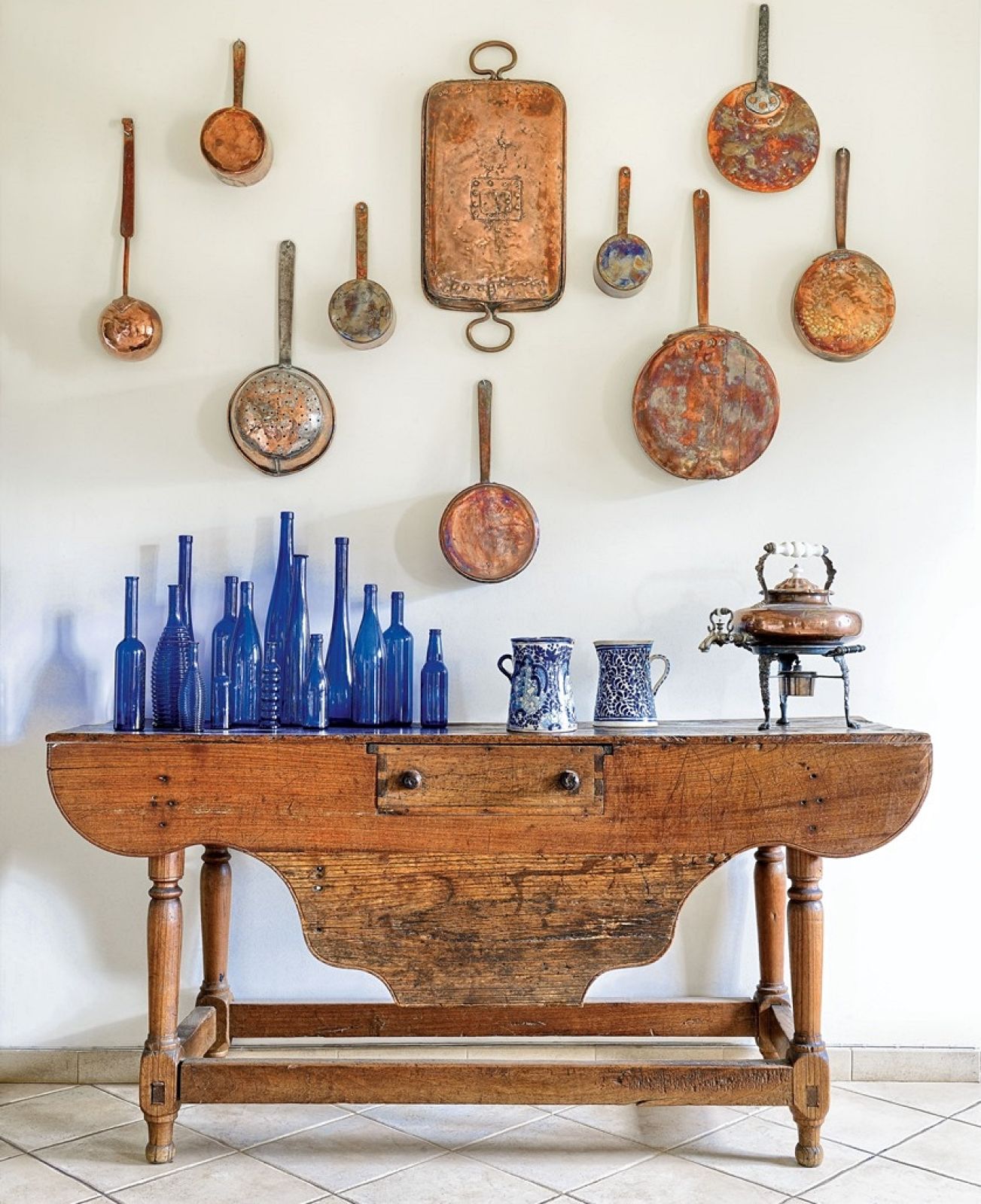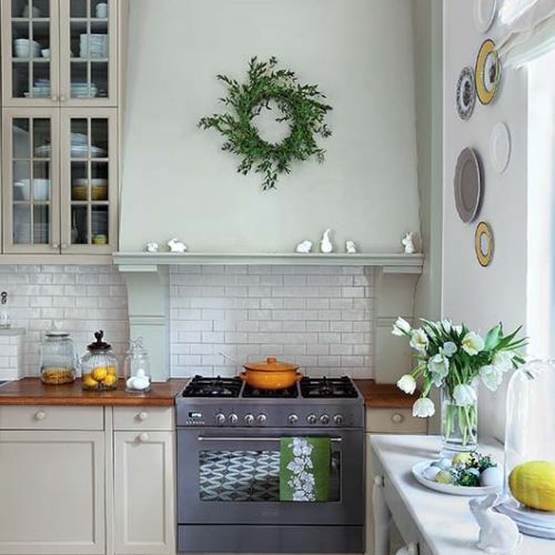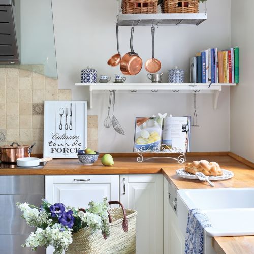 Zainspirowało was połączenie stylu rustykalnego i minimalizmu? Jeśli więc planujecie ograniczyć meble kuchenne do prostych szafek i półek, weźcie pod uwagę fakt, że takie rozwiązanie mocno wyeksponuje ściany. Warto powieśić na nich dekoracje ścienne, np. talerze dekoracyjne, które są teraz bardzo modne. W nowoczesnej rustyklanej kuchni biel i drewno ożywią kolory, np. niebieskie dodatki albo czerwone akcenty.