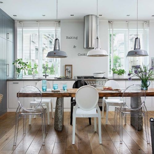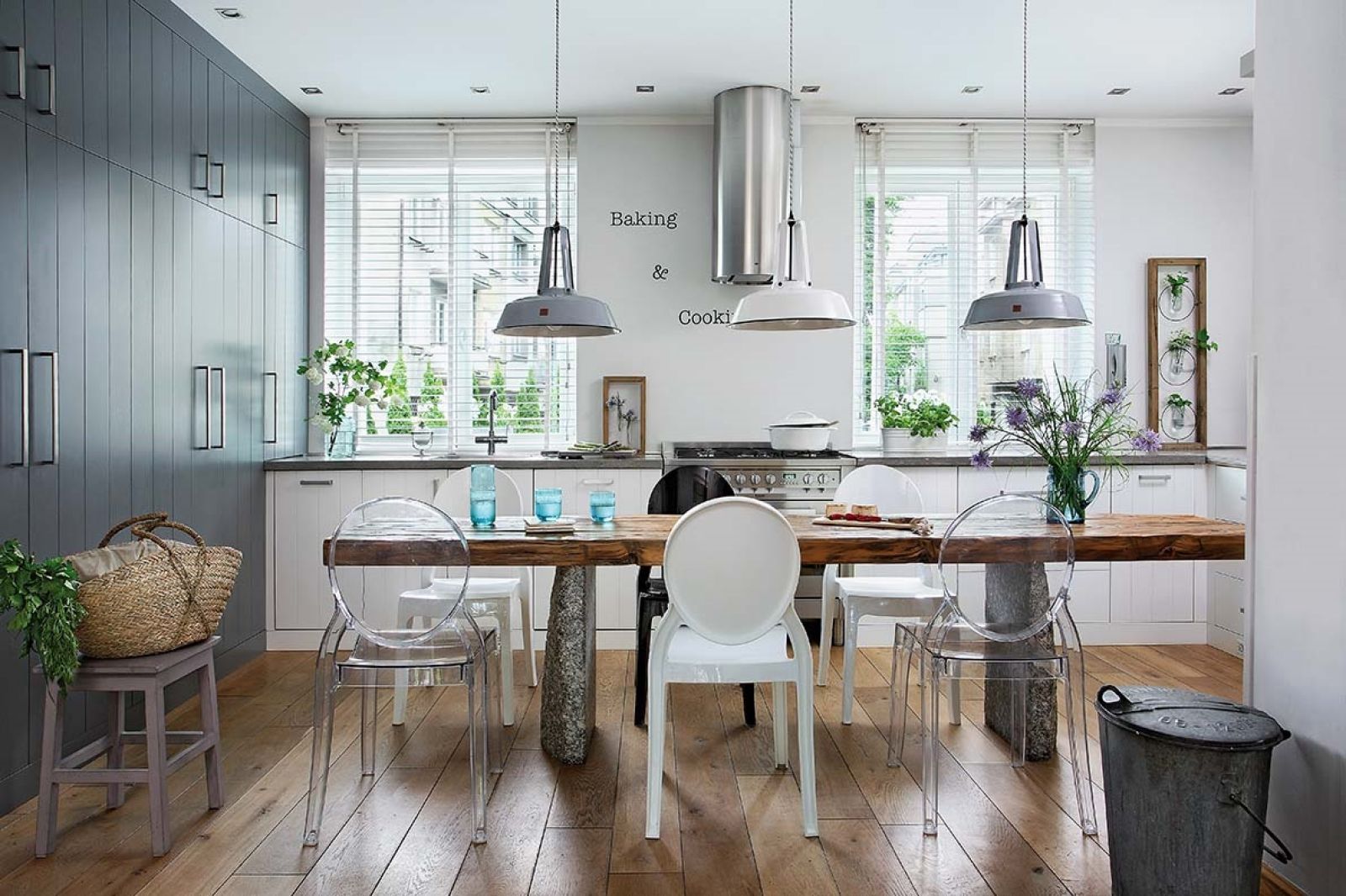 Dzisiaj rządzi nim eklektyzm – wystrój rustykalnych wnętrz jest bardziej zróżnicowany i świetnie łączy się np. z nowoczesnymi elementami i współczesnym designem. Taką aranżację zobaczycie m.in. w sesji Dwustuletni dom i nowoczesne meble. W tym domu, dzięki połączeniu starego z nowym, powstało wnętrze minimalistyczne, ale przytulne i z twistem. Innym ciekawym rozwiązaniem jest połączenie elementów rustykalnych i industrialnych. Obok drewna znajdą się więc odsłonięte cegły albo betonowe ściany. Jeśli lubicie odważne i oryginalne rozwiązania w kuchni, to taka mieszanka stylów będzie świetnym pomysłem.