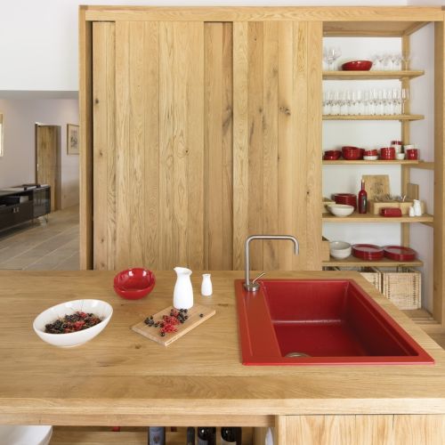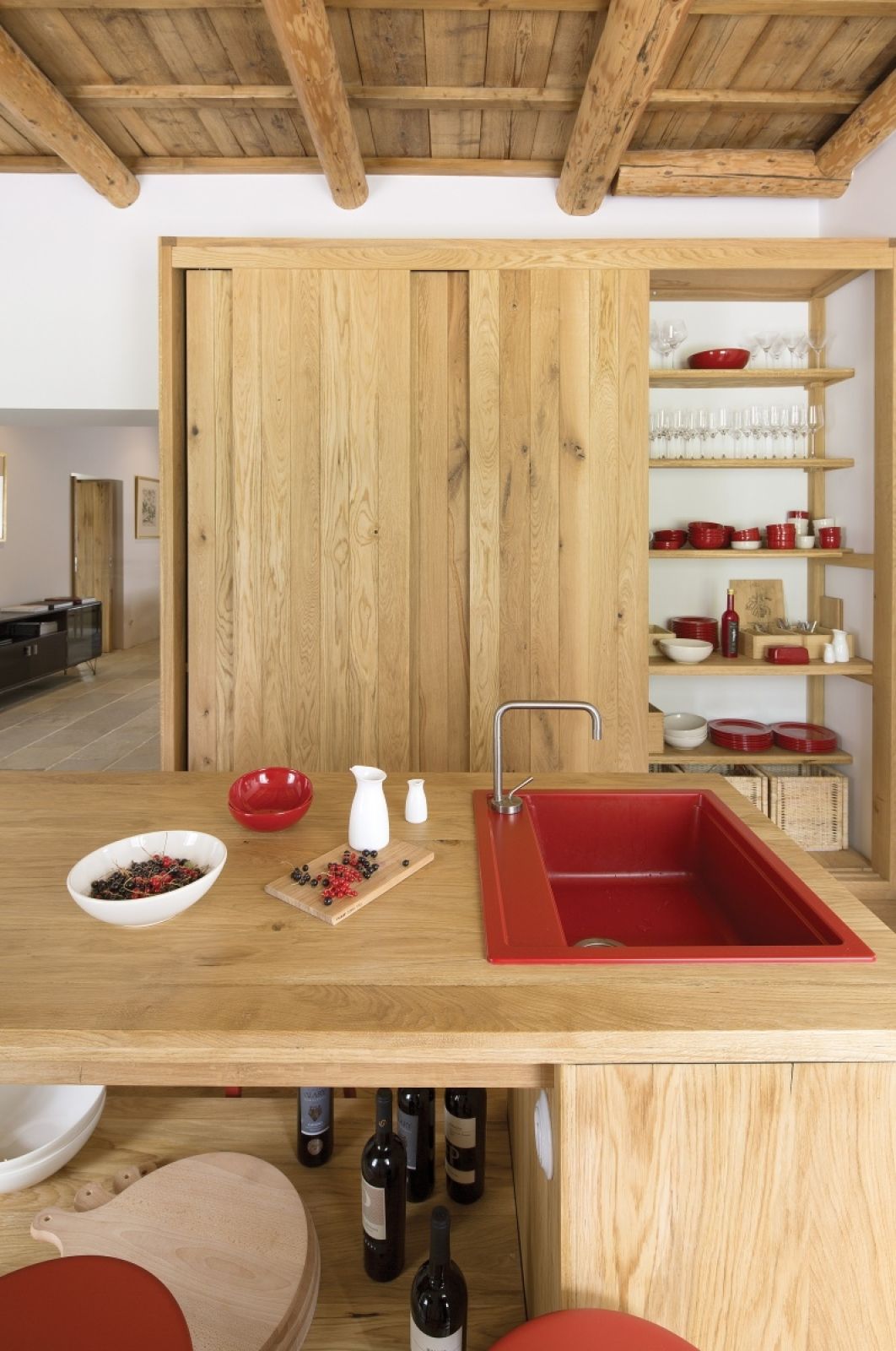 Podstawowym elementem kuchni rustykalnej jest drewno. Jego gatunek, wiek i stan zużycia może mieć duży wpływ na wygląd pomieszczenia. Często, zwłaszcza w starych domach i kamienicach, pod warstwą tynku i wykładzinami kryją się prawdziwe skarby, np. piękny dębowy parkiet, podłoga z bukowych desek albo drewniany strop. Warto je odsłonić, żeby stworzyć akcent stylistyczny w rustykalnej kuchni.