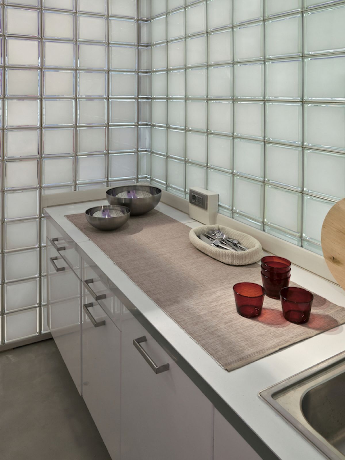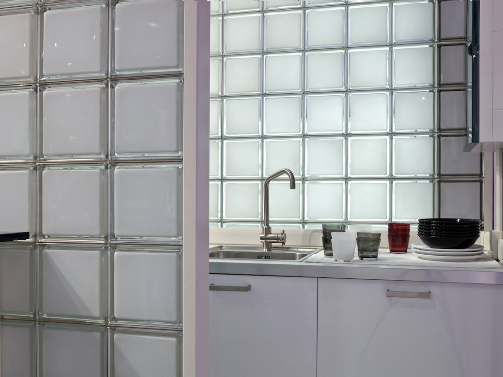 Jednym z nich jest zastosowanie w kuchni luksferów. Bloczki szklane użyte w miejscu tradycyjnych ścianek działowych dzielących kuchnię od korytarza, jadalni czy salonu pozwalają na wpuszczenie do wnętrza dodatkowego światła z innych pomieszczeń. Dzięki zastosowaniu luksferów uzyskujemy efekt przestrzenności - ważny szczególnie w mniejszych wnętrzach, w których nie zawsze możemy pozwolić sobie na połączenie kuchni z innymi pomieszczeniem. Dzieląc pomieszczenia za pomocą półprzezroczystego szkła zachowujemy odpowiednią izolację przed wydostaniem się do innych części mieszkania nieprzyjemnych zapachów, a nieporządek towarzyszący gotowaniu staje się niewidoczny.