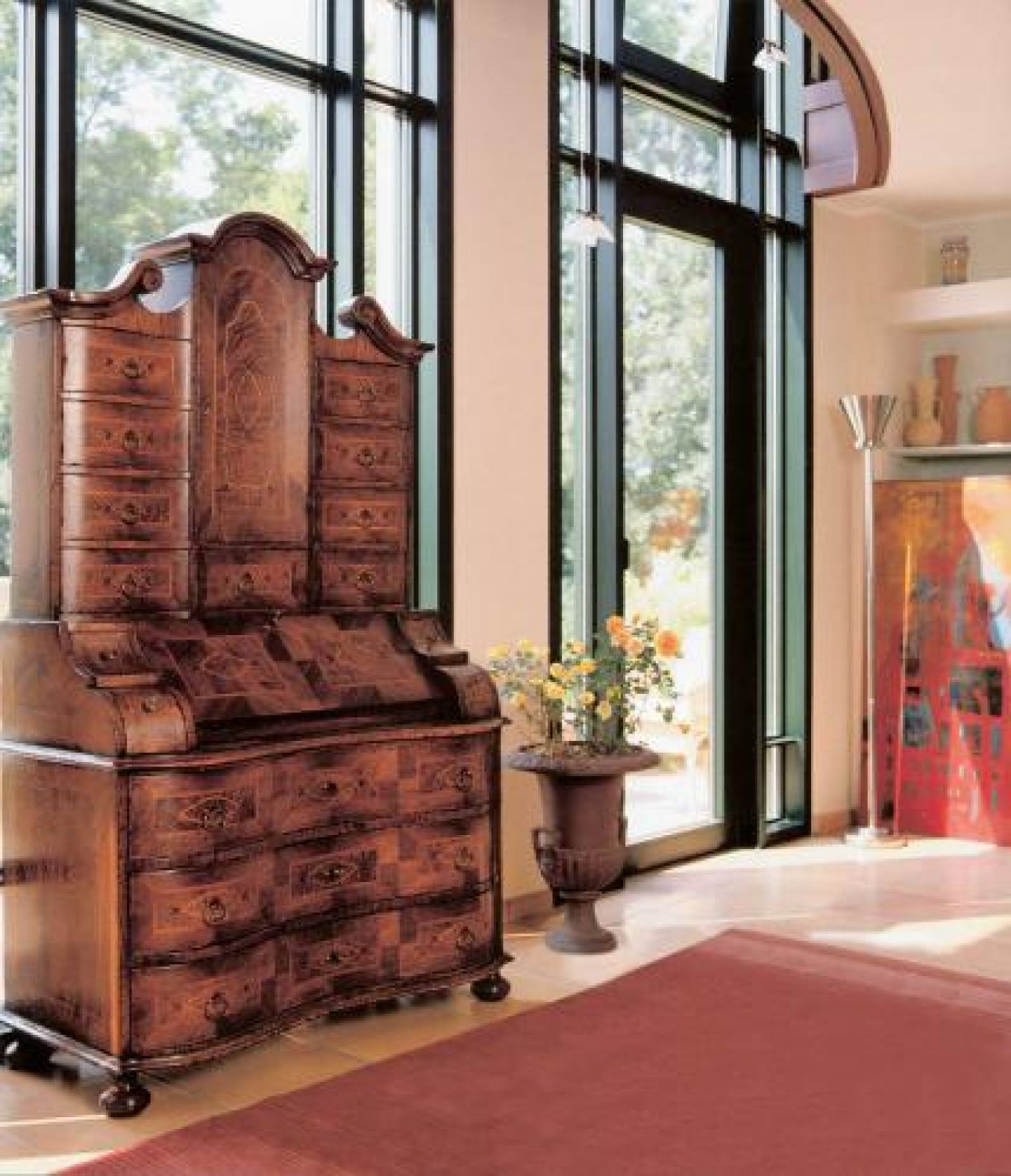 Wyszły spod ręki ebenisty André Charlesa Boulle'a. Na życzenie Króla Słońce stworzył kabinety inkrustowane cyną, miedzią i szylkretem, komody intarsjowane hebanem z wyrafinowanym motywem roślinnej wici, biblioteki z intarsją reliefową, czyli zdobieniami z drewna, na które nakładano płaskorzeźby z pozłacanego brązu. Artysta zyskał miano najzręczniejszego twórcy szaf, a charakterystyczną inkrustację z płytek szylkretu i mosiądzu nazwano jego imieniem. Ale sztuka ta znana już była znacznie wcześniej.