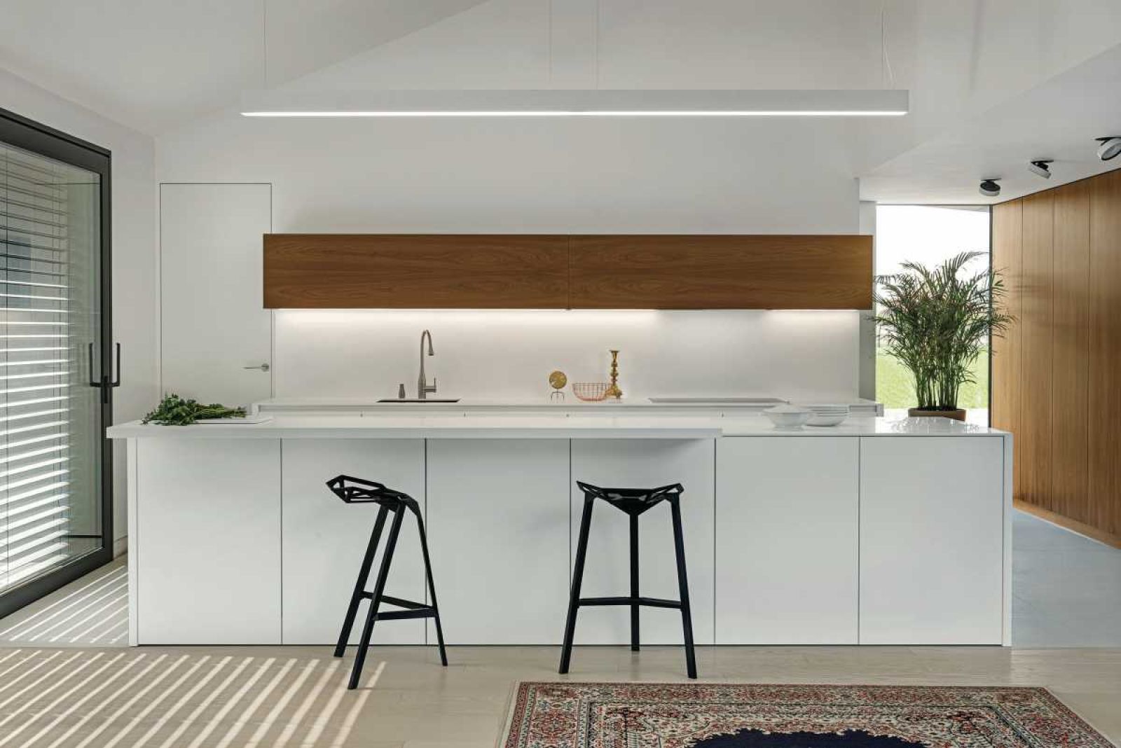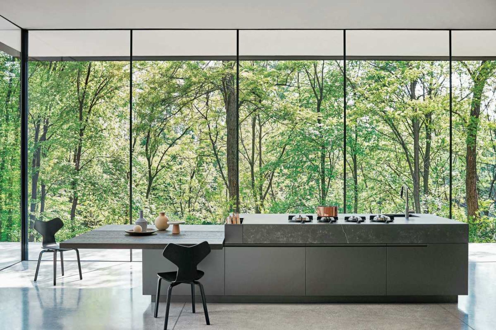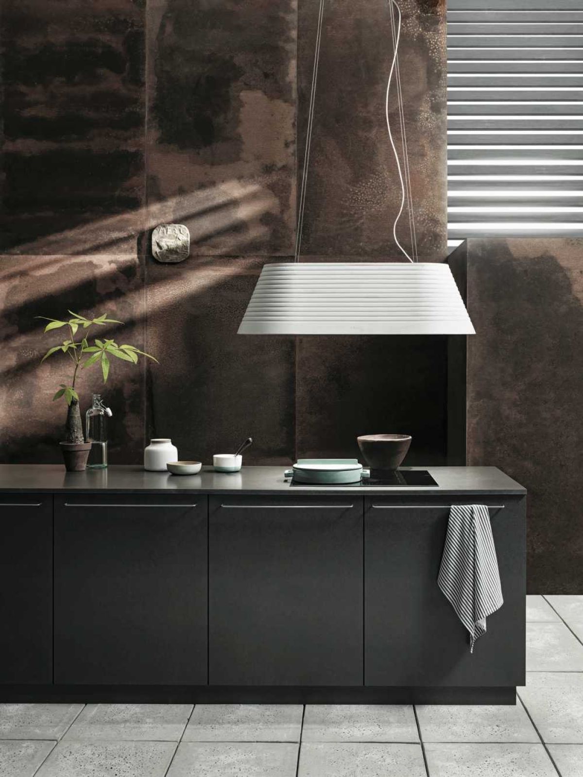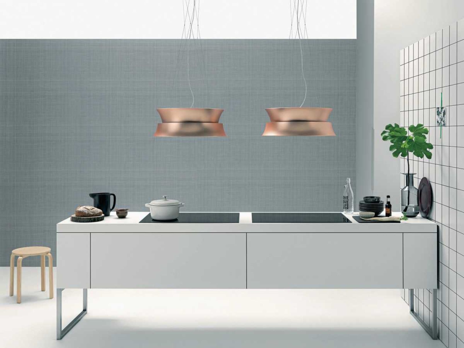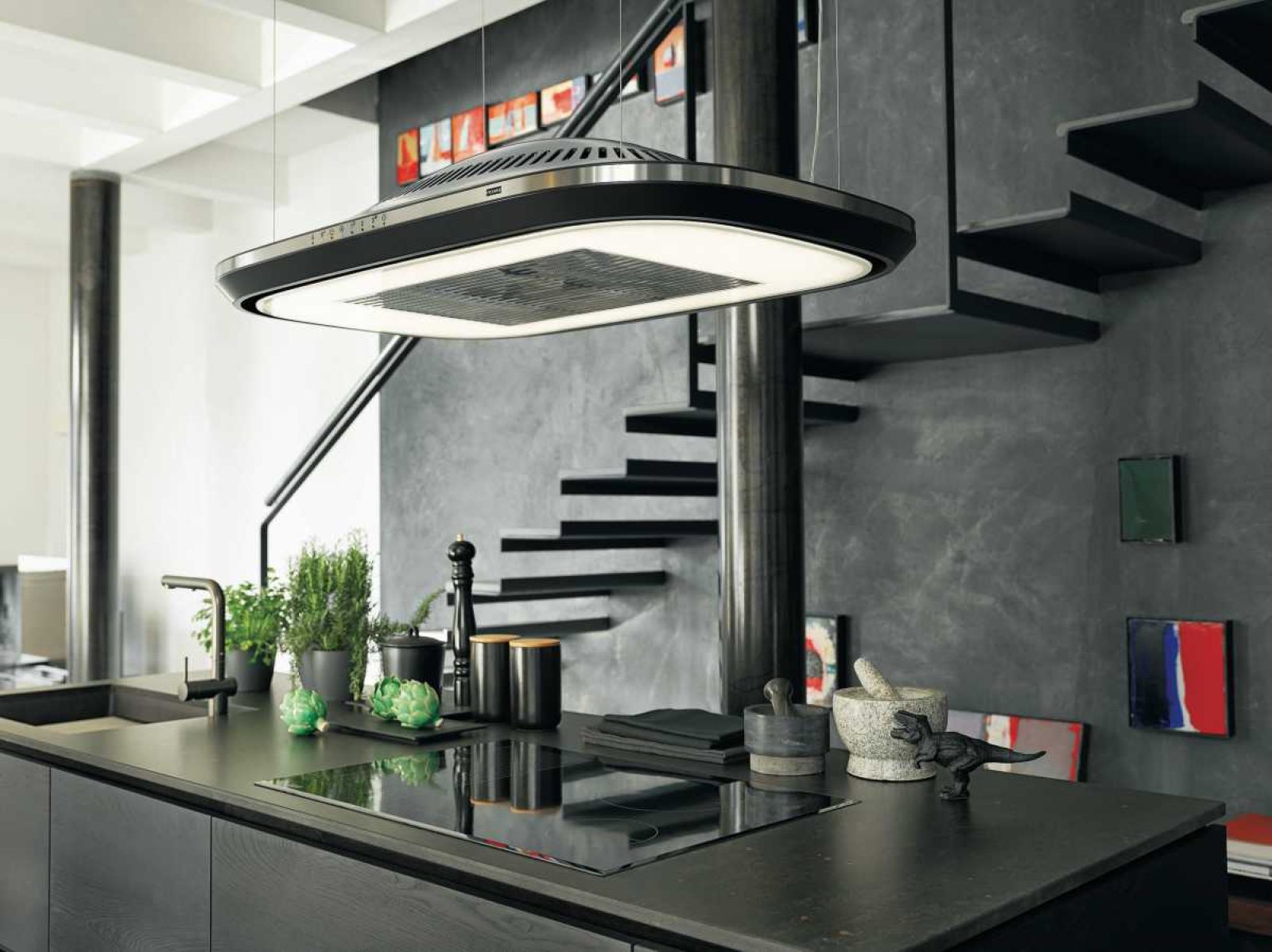 Możemy wyłożyć nimi kuchenną ścianę albo fragmenty podłogi. Doskonale sprawdzają się też spieki kwarcowe czy corian. Są nie tylko tańsze niż kamień, ale też cieńsze i dużo lżejsze. Światło Jest naszym wielkim sojusznikiem. Kiedy gotujemy, musi być przede wszystkim wygodnie, więc podstawą są dobrze oświetlony blat do pracy, kuchenka i zlew. W kuchni robimy też mnóstwo innych rzeczy, więc światło pomoże zbudować odpowiedni klimat. Modne są okapy do złudzenia przypominające lampy. Wystarczy spojrzeć na propozycję marki Falmec, gdzie betonowa obudowa kryje i filtry, i lampki.