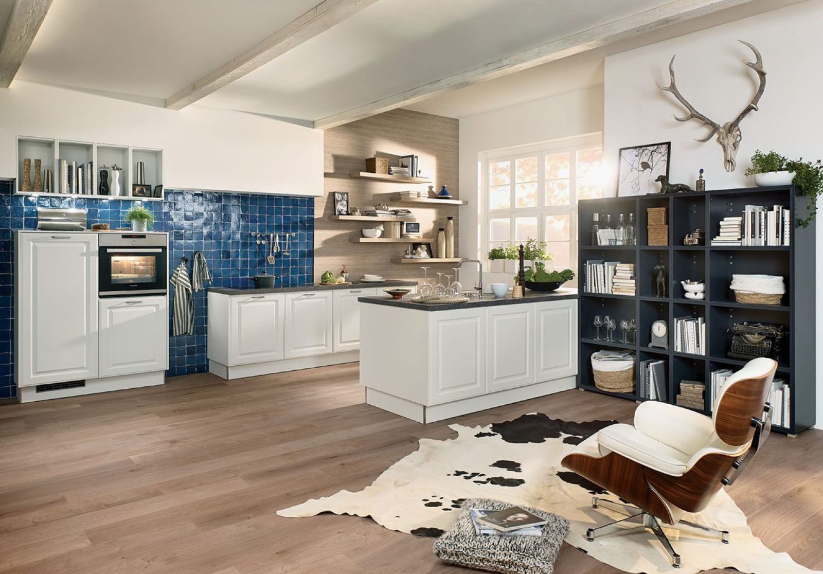 Tak dużo czasu spędzamy w kuchni, że nie chcemy, aby była... kuchenna. Jeśli zależy nam, by przypominała salon, wstawiamy do niej fotel, sofkę i kawowy stolik. Wieszamy półki na książki, żeby w czasie doglądania potraw przeczytać kilka stron. Na podłogę kładziemy dywan jutowy albo nawet persa. Półki i witryny traktujemy tak, jakby były salonowymi meblami, ustawiając na nich ulubione drobiazgi.