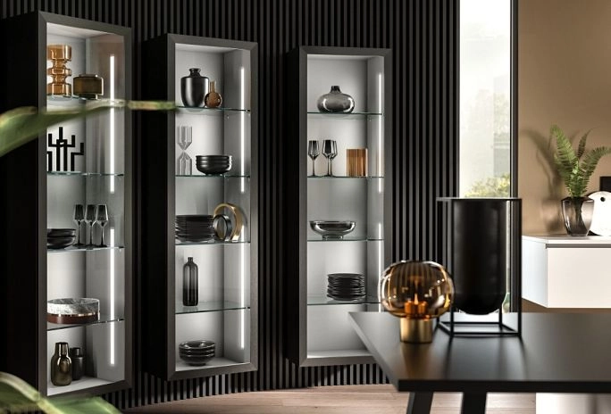 W kuchni świetnie sprawdzają się też witryny. Są równie praktyczne jak regały, w których ustawiamy akcesoria oraz dekoracje. Rzeczy zamknięte za szklanymi drzwiczkami witryn pozostają na widoku, ale też zyskują elegancki, stylowy wygląd. Podświetlane witryny budują przytulną atmosferę we wnętrzu. Szczególnie dobrze prezentują się w kuchni otwartej na salon, gdzie przyciągają uwagę gości. Wyglądają lekko i elegancko, jednocześnie tworząc scenerię dla rzeczy, które są dla nas ważne – w nich wszystko nabiera niezwykłej mocy. Niezależnie od tego, czy chodzi o cenną porcelanową zastawę stołową, oryginalną nowoczesną rzeźbę czy designerskie akcesoria kuchenne. Każdy przedmiot w witrynie wygląda jak prawdziwe dzieło sztuki.