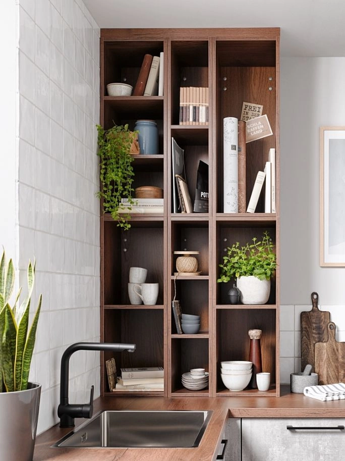 Regał kuchenny może nas zaskoczyć – i swoją elegancką formą, i specjalnymi, sprytnymi rozwiązaniami, które sprawiają, że staje się jeszcze bardziej funkcjonalny. Projektanci marki Häcker nie przestają się zastanawiać, jak ułatwiać nam życie. Nowoczesne systemy regałów otwierają przestrzeń, dekorują wnętrze, ale także nadają każdej kuchni niepowtarzalnego charakteru. Gdzie indziej młynek do kawy, zioła w doniczkach czy książki kucharskie wyglądałyby tak dobrze? Ustawione obok siebie w regale kuchennym tworzą piękne kompozycje, od który nie możemy oderwać oczu.