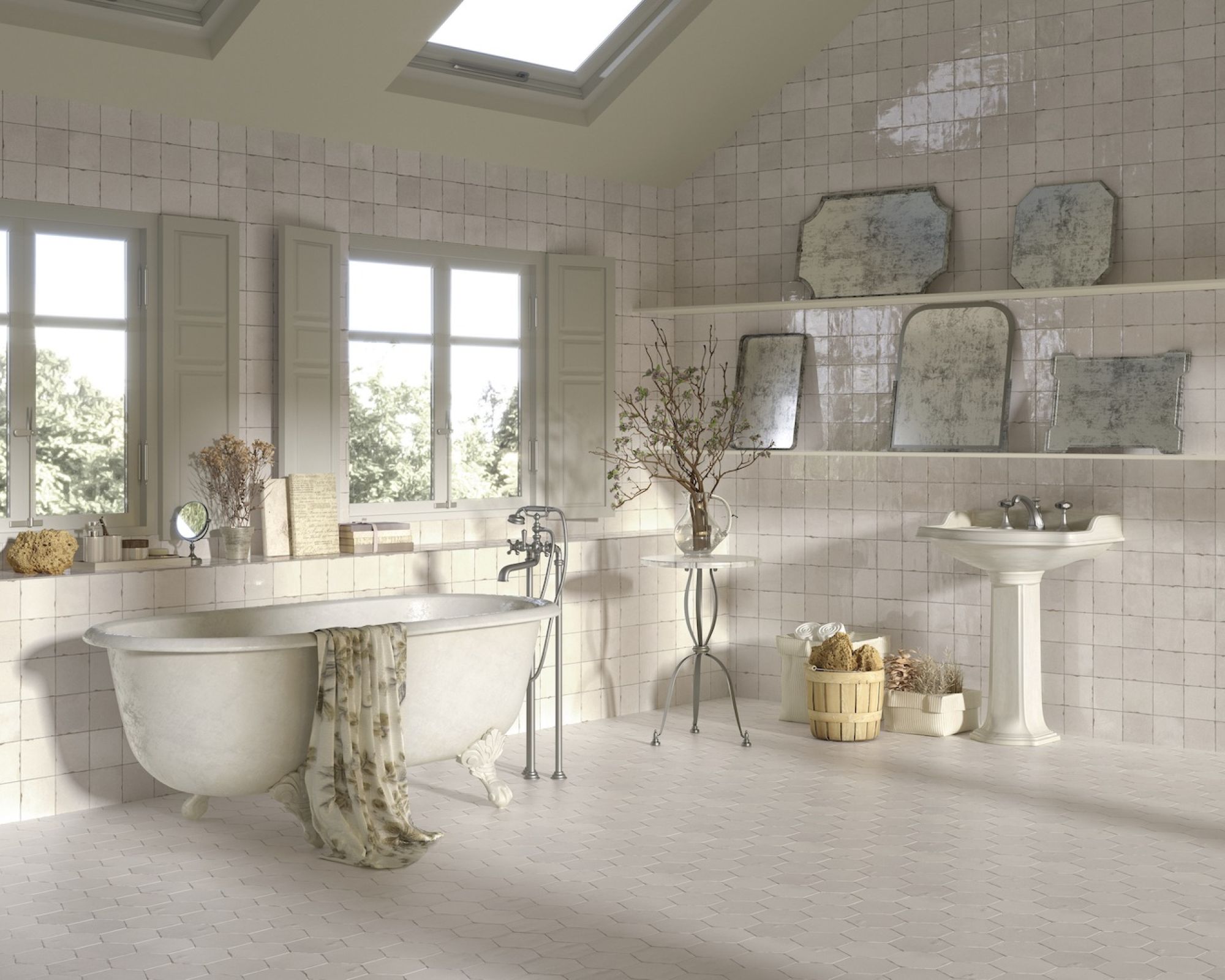 Odpowiednio wybrane kafelki na podłodze same w sobie mogą być dekoracyjne. Ale uwaga: żeby pasowały, ściany niech pozostaną białe, bo inaczej tak mocny akcent na podłodze będzie się „gryzł” z resztą płytek i dostaniemy zwyczajnie oczopląsu. I odwrotnie: jeśli położymy na ścianach płytki z ornamentem, podłoga musi pozostać neutralna, gładka, w stonowanych barwach.