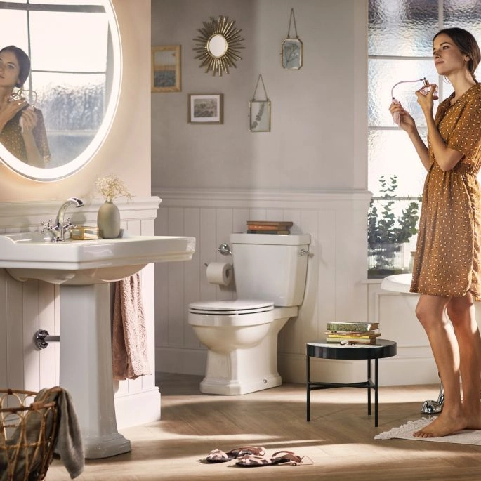 Łazienka to często pierwsze pomieszczenie, które odwiedzamy po przebudzeniu się, więc warto zadbać o jego zrównoważoną aranżację, by każdy dzień zaczynał się jak najlepiej. W komfortowej przestrzeni, gdzie wszystko jest pod ręką. W miejscu, w którym towarzyszą nam najwyższej jakości materiały i innowacyjne rozwiązania sprzyjające proekologicznym postawom.