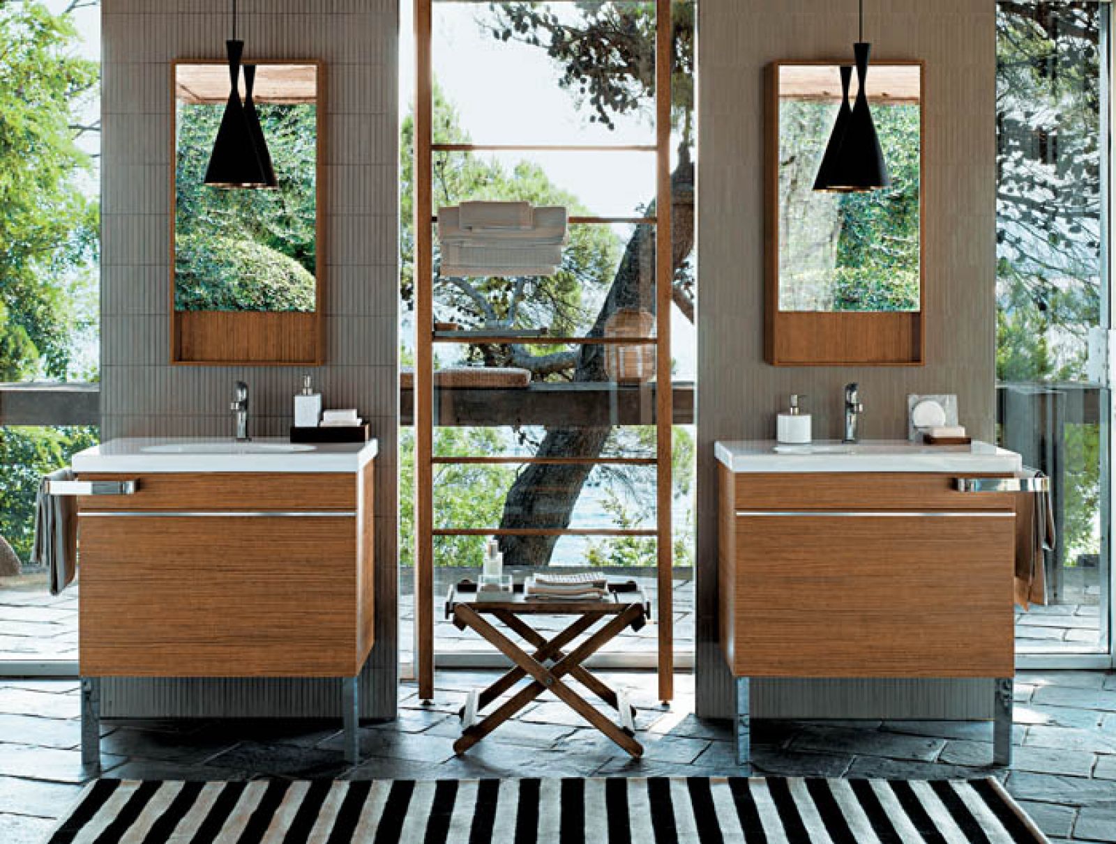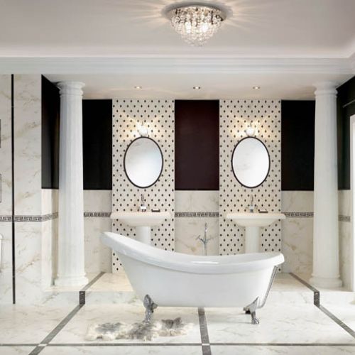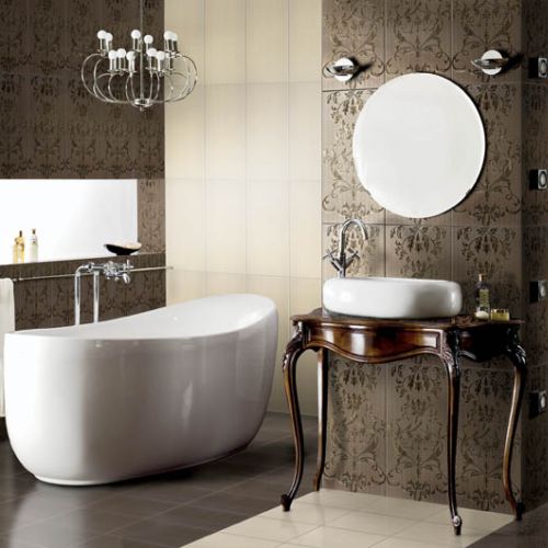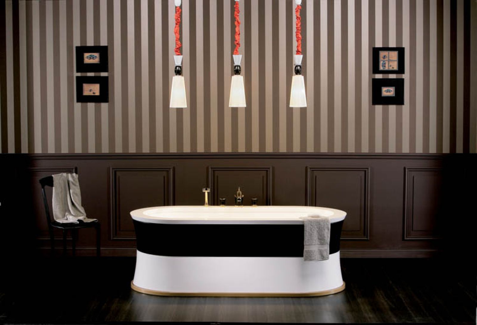 Przytulnie zrobi się też, gdy wstawimy stylowe fotele, powiesimy kotary w oknach i obrazy. – A także tapety, koniecznie winylowe. Te najbardziej trwałe to Designers Guild, Romo, Zoffany, Eijffinger, Arte czy Ralph Lauren. Sprawdzi się i angielska boazeria – podpowiada Maja Krajewska, współwłaścicielka sklepu Square Space. No i dodatki: fazowane lustra, żyrandole, stylizowane mydelniczki. W tych ostatnich celuje francuski projektant Olivier Gagn¯re, okrzyknięty mistrzem neoklasycyzmu – jego ręcznie malowane kubki, inspirowane greckimi wazami puzderka czy pozłacane dozowniki równie dobrze mogłyby stanąć na kominku w salonie. – Coraz więcej firm, dotąd produkujących jedynie ceramikę czy armaturę, stawia na dodatki – podkreśla Adam Pulwicki. – Słynna marka Antonio Lupi do ceramiki proponuje skórzane dywany i kominki – opowiada.