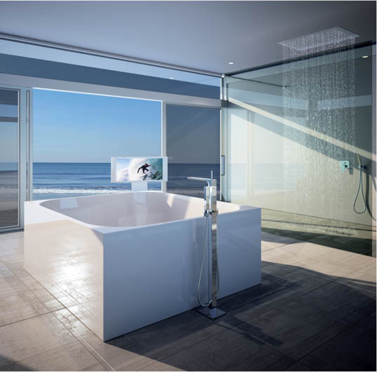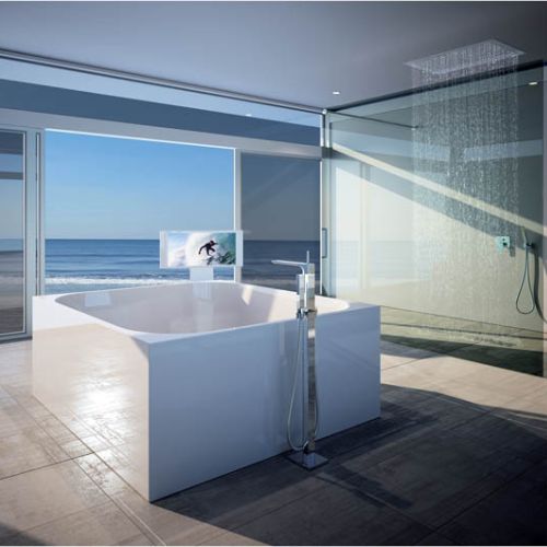 Łazienka nowoczesna jest również inteligentna: naszpikowana techniką. To pokój, w którym wszystko jest zdalnie sterowane. Wystarczy naciśnięcie guzika na pilocie i podgrzejemy deskę sedesową (jak w WC Sensowash Starcka), a za pomocą iPoda ustawimy muzykę w saunie (Inipi Duravitu). Za to armatura firmy IHouse rozpozna twarz kąpiącego i sama ustawi strumień wody, jaki najbardziej lubimy. Do tego dochodzą modne gadżety: dziś biorąc prysznic, obejrzymy telewizję (wodoodporne telewizory AquaTV mają system Anti-Fog – ekran nie zaparuje), a wanna wymyślona przez Sanyo sama napełni się wodą, po czym nas umyje, spłucze i wysuszy. Wreszcie, gdy wybierzemy Faucet Foam, nakładkę na baterię, mydło od razu zmiesza się z wodą.
