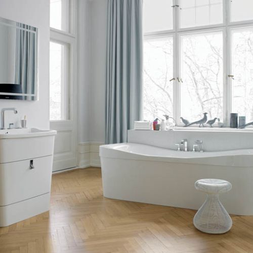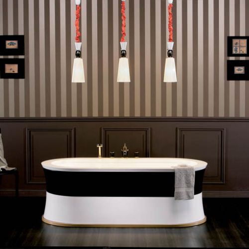 W łazienkach klasycznych też nie brakuje technicznych nowinek, ale projektanci bardziej niż na termostaty i baterie bezdotykowe zwracają uwagę na nastrój. A ten tworzy na przykład światło. Cermag proponuje specjalne taśmy z diodami LED (są elastyczne, więc bez problemu dopasujemy je do kształtu wanny), Poolspa – wannę Sekret z przeszklonym bokiem, dzięki czemu widać podświetloną na fioletowo wodę.