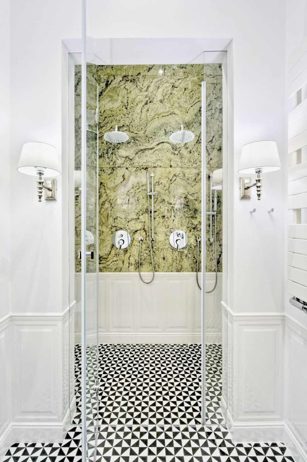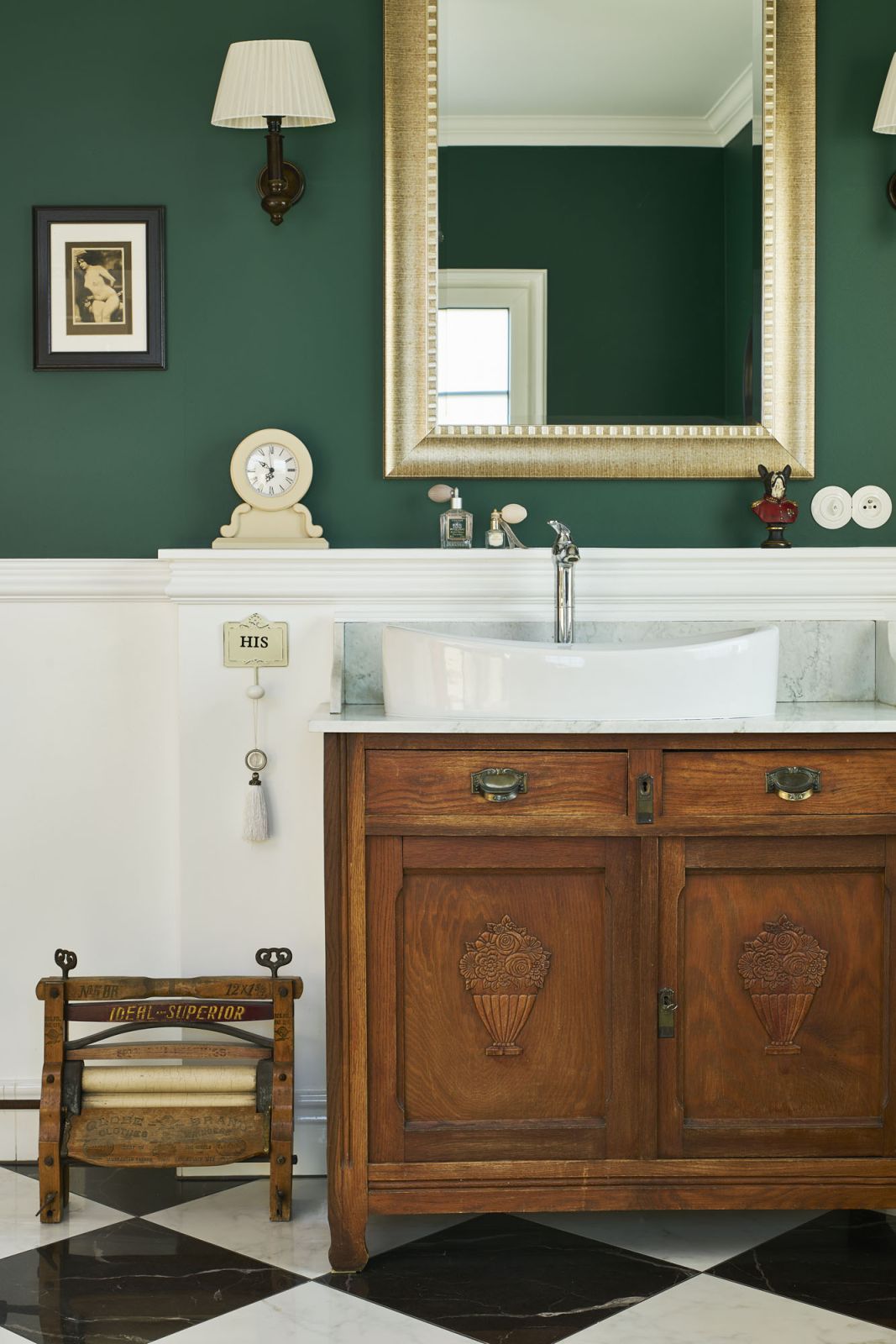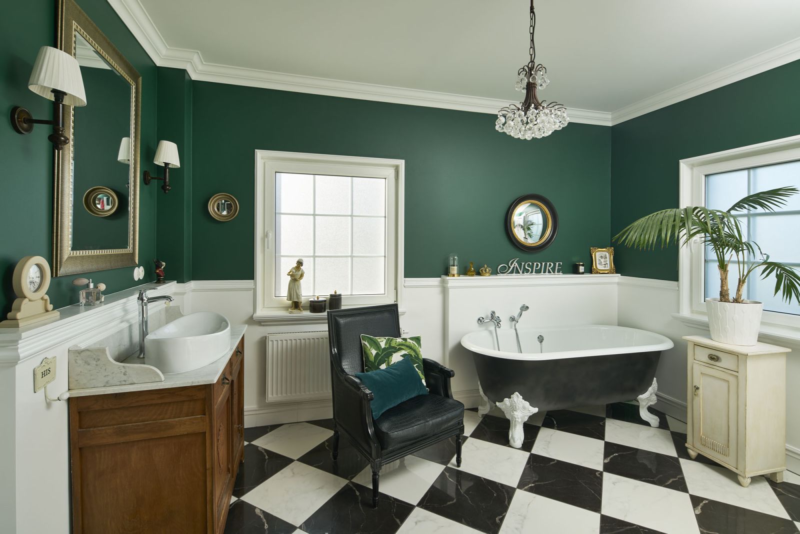 Klasyczne łazienki, urządzone w klimacie przedwojennych wnętrz, nadal lubią ponadczasowe zestawienie czerni i bieli oraz stylizowane meble, np. szafki pod umywalkę a la Ludwik XV. Świetnie się z nimi komponują baterie w kolorze starego złota, lustra w mosiężnych ramach czy miedziane lampy.