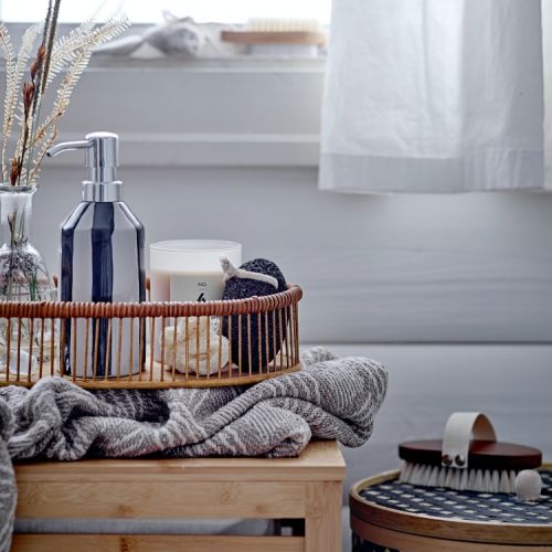 Dobrze dobrane dodatki są jak wisienka na torcie – dekorują przestrzeń, nadają jej ostatecznego szlifu. Ale uwaga: pamiętaj, że łazienka styl skandynawski nie znosi sztuczności – zrezygnuj z plastikowych gadżetów. Wykreuj przytulny klimat z pomocą naturalnych materiałów. Świetnie będą wyglądały też akcenty inspirowane stylem vintage. Poszukiwania odpowiednich dodatków zacznij od tych najpotrzebniejszych, czyli do przechowywania. Przydadzą się puzderka ze szkła i mosiądzu, drewniane deski, wyplatane koszyczki czy tace, na których możesz poustawiać kosmetyki. Jeśli nie masz miejsca wokół wanny, pomyśl o nakładanej na wannę półce z bambusa – możesz na niej ustawić dozowniki na mydło czy szampony. Na blacie przy umywalce przyda się stojak na biżuterię – np. w kształcie drzewka.