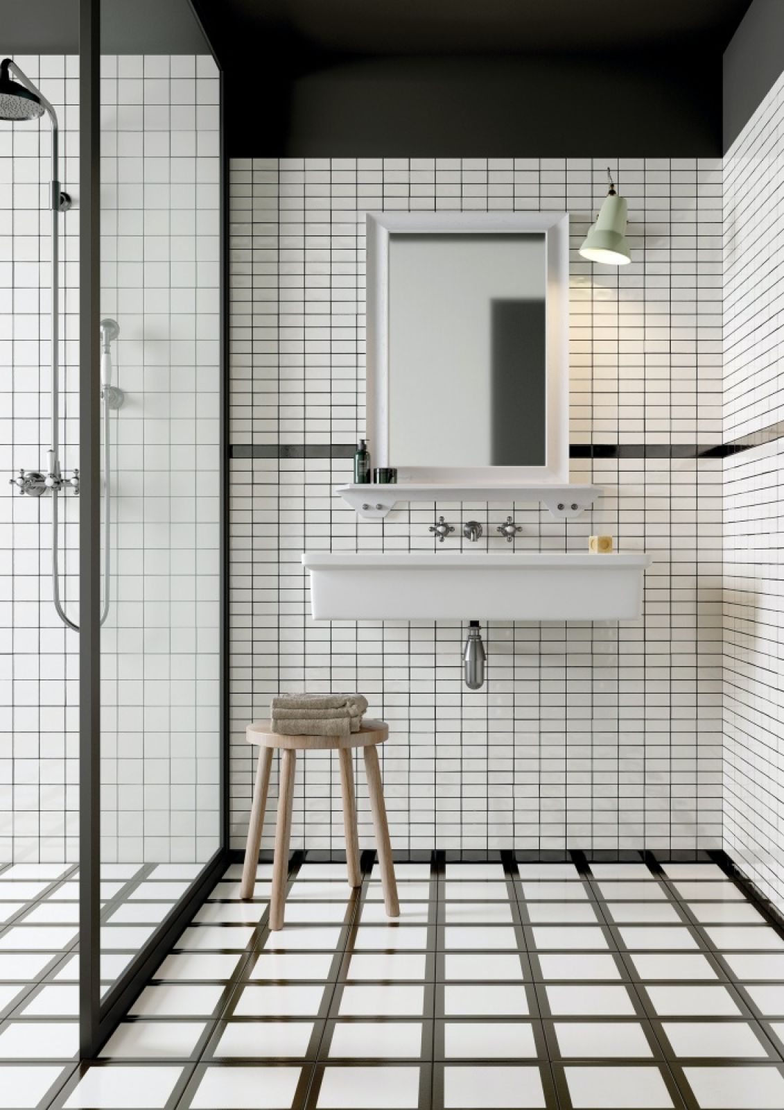Jeśli lubisz ponadczasowe wnętrza, które potrafią oprzeć się modom, postaw na klasyczne połączenie czarnych płytek z białymi. Czarno-biała łazienka zawsze będzie na czasie.