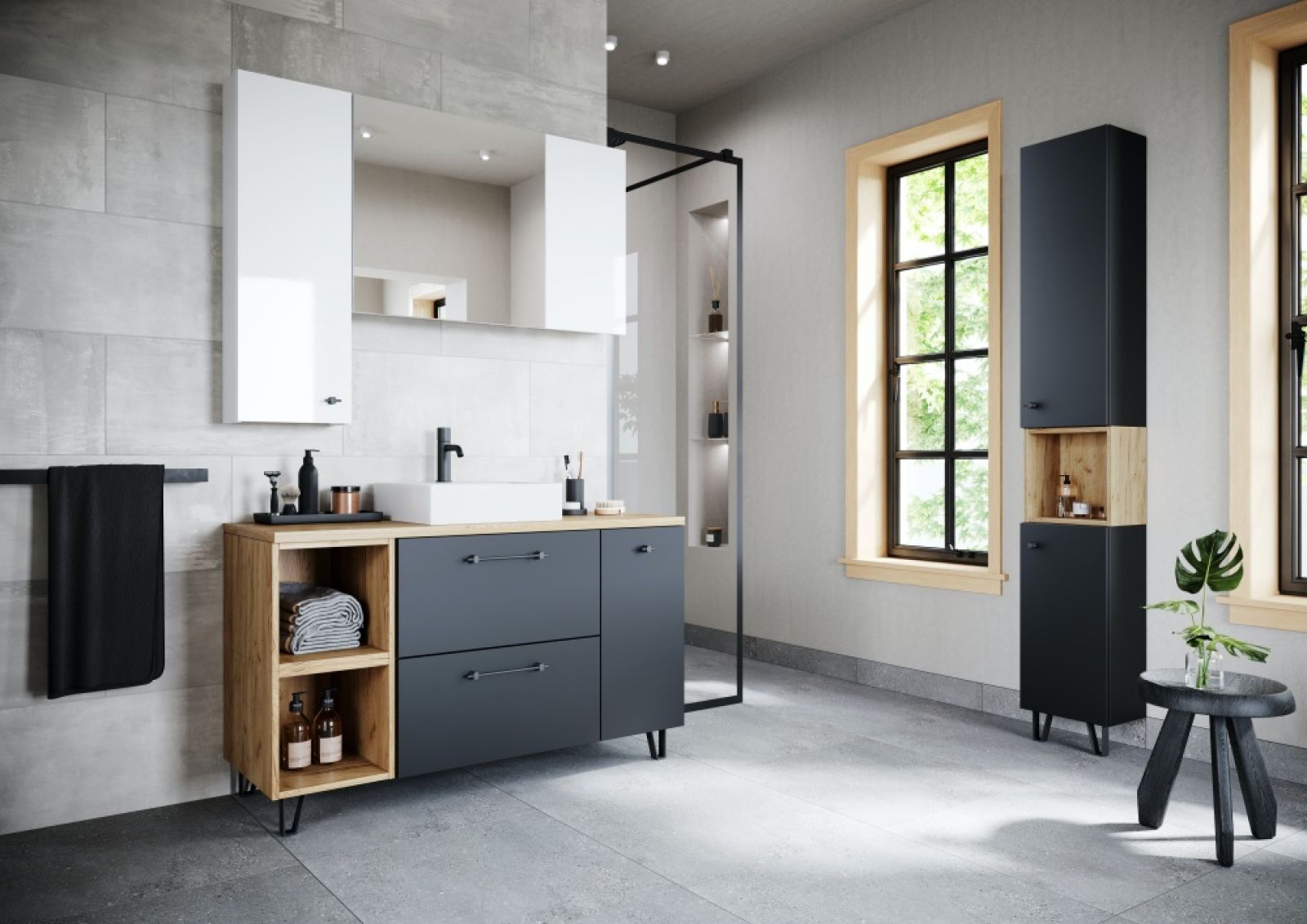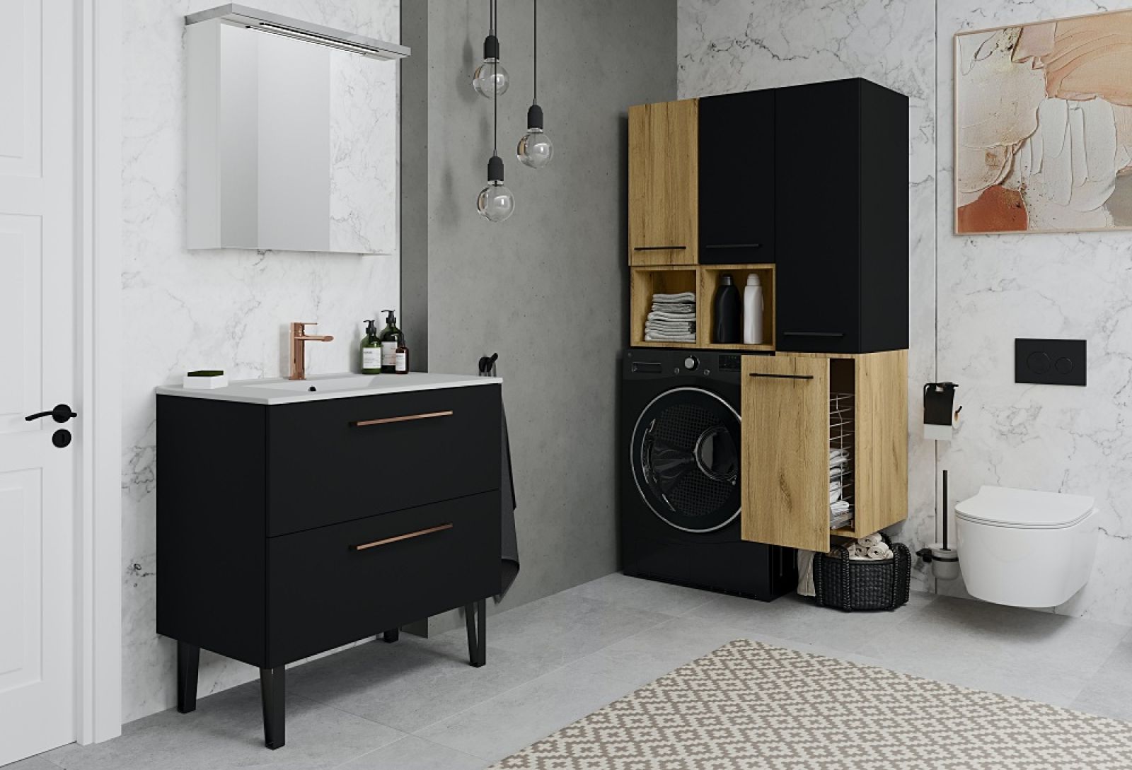Czerń jest elegancka, trochę tajemnicza i teatralna. A drewno kojarzy się z ciepłem, przytulnością oraz naturą. Czy da się je połączyć w łazience? Jak najbardziej!