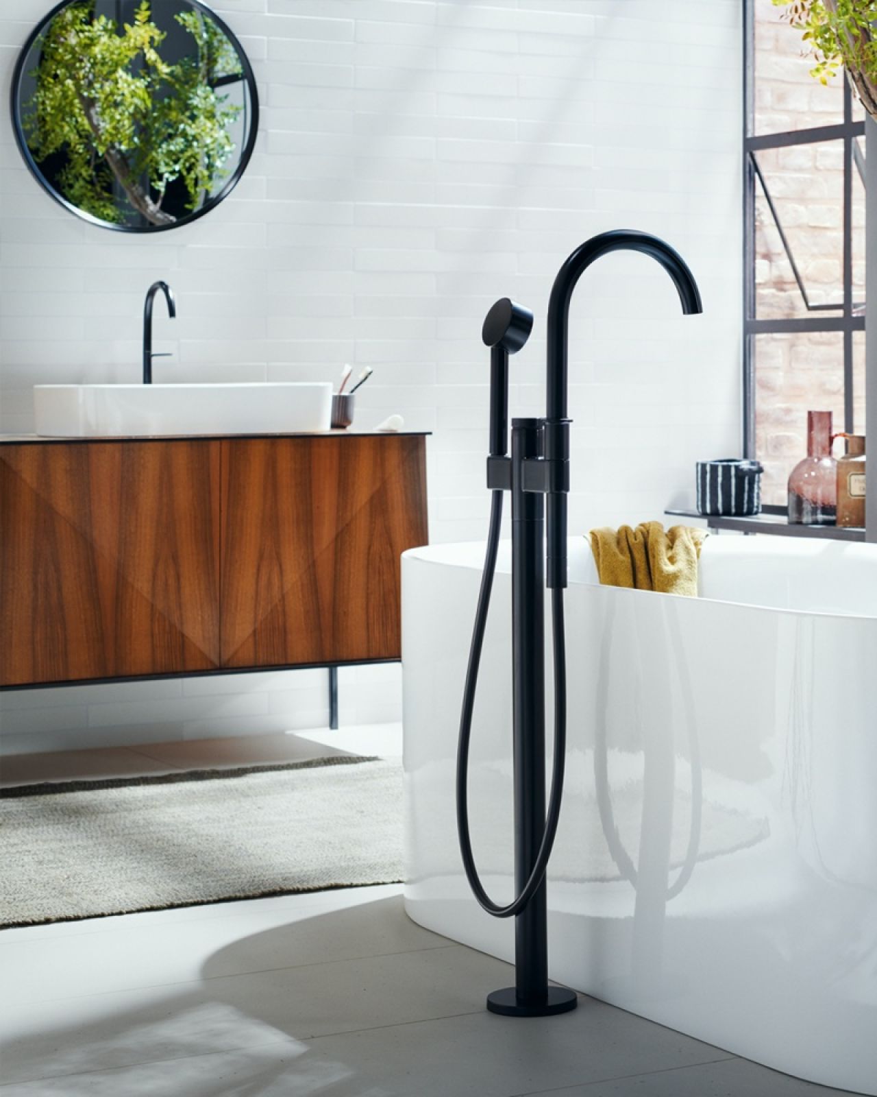 Czarna armatura łazienkowa ma ostatnio swoje pięć minut. Świetnie pasuje do nowoczesnych wnętrz i minimalistycznych aranżacji, gdzie na tle surowego wystroju może zagrać główną rolę.
