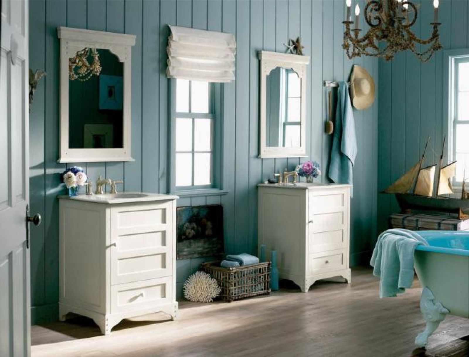 Dobrze będzie wyglądała też podłoga ułożona w pokładowy wzór. Inne materiały, które weźmiemy pod uwagę, to kamień czy gres w jasnych kolorach, szkło i stal. Łazienka rustykalna powinna mieć elementy z drewna rodzimego z widocznymi sękami, nierównościami, o odcieniach złocistych i brązowych. Do tego zestawu świetnie pasują dodatki białe, błękitne, butelkowa zieleń. Zapomnijmy o połysku, wystarczy rysunek słojów podkreślony przez olejowanie.