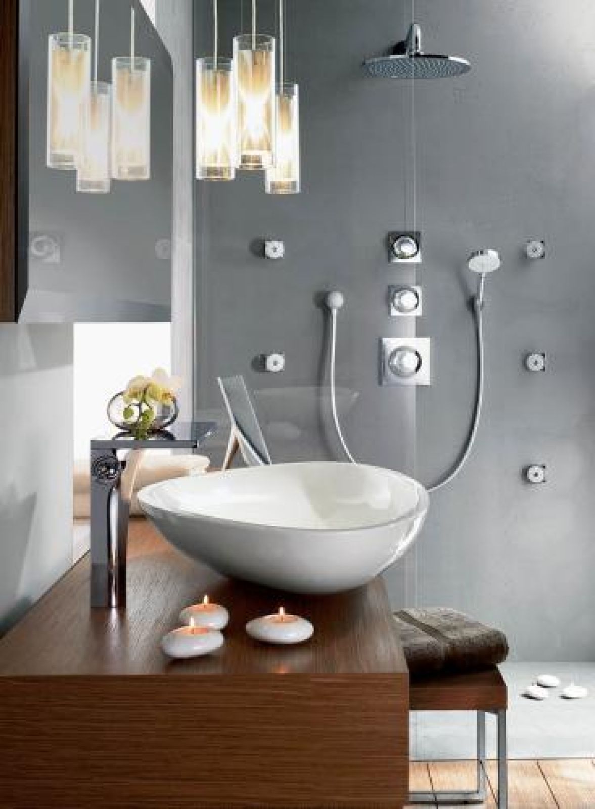Obok wymyślnych sprzętów zaprojektowanych przez mistrzów współczesnego wzornictwa, jak Starck, Urquiola czy Citterio, zobaczymy stare drewniane wanny i cebrzyki. A ogromna reprodukcja obrazu jakiegoś średniowiecznego malarza pokazuje, jak z nich korzystano. Oto rząd wanien, w każdej pan i pani w negliżu. Dowcipkują, śmieją się i... ucztują. Między każdą parą ustawiono drewnianą tacę z trunkami, owocami, mięsiwem. Nie widzimy tu jakiejkolwiek obawy o to, że wanna mogłaby zacząć przeciekać!