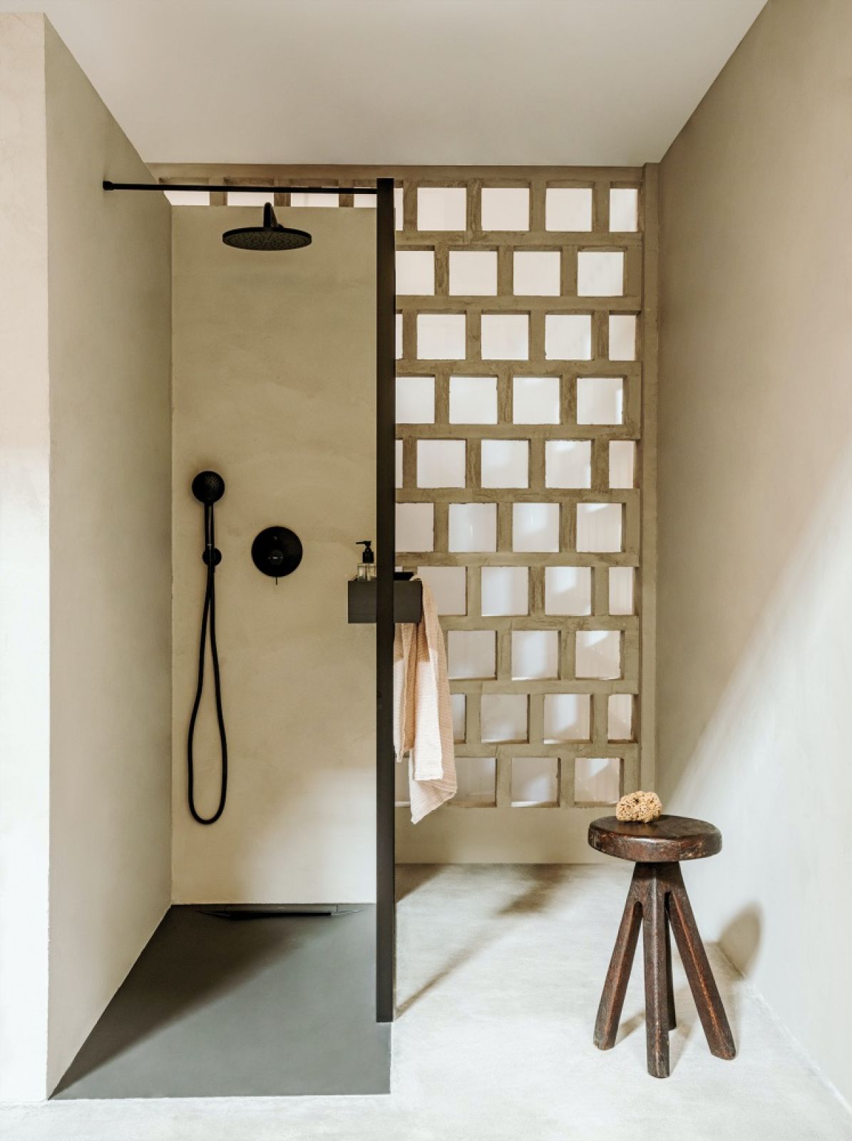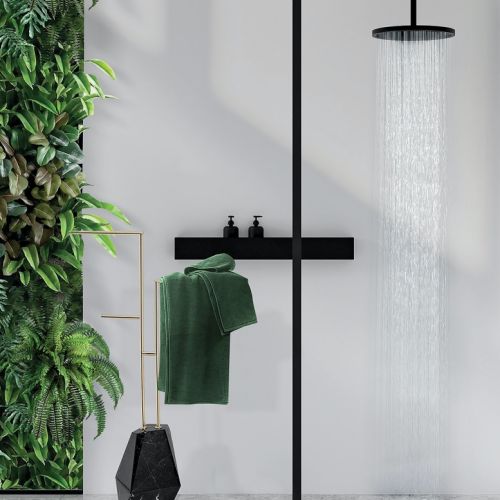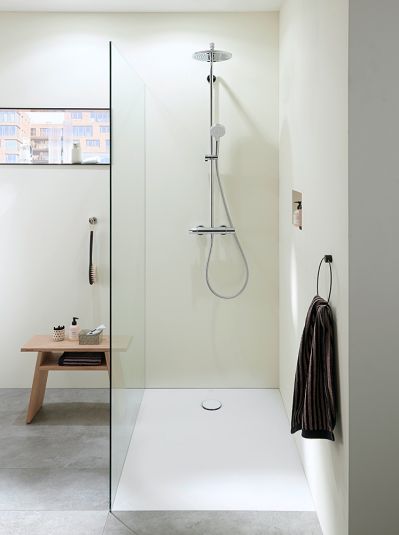 Armatura – najlepiej podtynkowa. Takie baterie zajmują mniej miejsca pod prysznicem na ścianie czy na blacie przy umywalce.