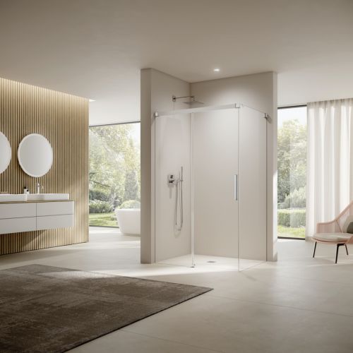 To zależy od usytuowania prysznica w łazience. Gdzie umieścić kabinę prysznicową, a gdzie zaaranżować strefę walk-in? Jeśli natrysk jest tak położony, że korzystanie z niego wiąże się z chlapaniem na wszystkie strony, lepiej zamknąć go w klasycznej kabinie prysznicowej. Nowoczesne rozwiązania w niczym nie przypominają topornych szklanych parawanów sprzed lat. Mają ścianki z eleganckiego, hartowanego szkła (na zamówienie możesz je ozdobić delikatnym grawerem), które cicho i lekko przesuwają się po rolkach umieszczonych w wyprofilowanych prowadnicach. Coraz większą popularnością cieszą się natryski walk-in. Są półotwarte, pozbawione drzwi, a od reszty łazienki oddziela je jedynie cienka tafla szkła. W przestronnej łazience, np. przy małżeńskiej sypialni, coraz częściej spotyka się takie prysznice w wersji double.
