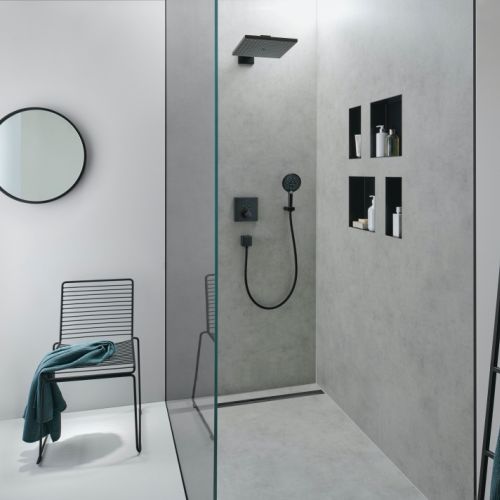 Odpływ liniowy możesz zamontować w podłodze i idealnie zlicować z płytkami, dobrać do baterii wykończenie w chromie polerowanym, szczotkowanym, czerni lub mosiądzu. Jeśli wybierzesz wersję slim będzie prawie niewidoczny. Taki prysznic bez brodzika jest ciekawym rozwiązaniem, które dyskretnie wtopi się w przestrzeń.
