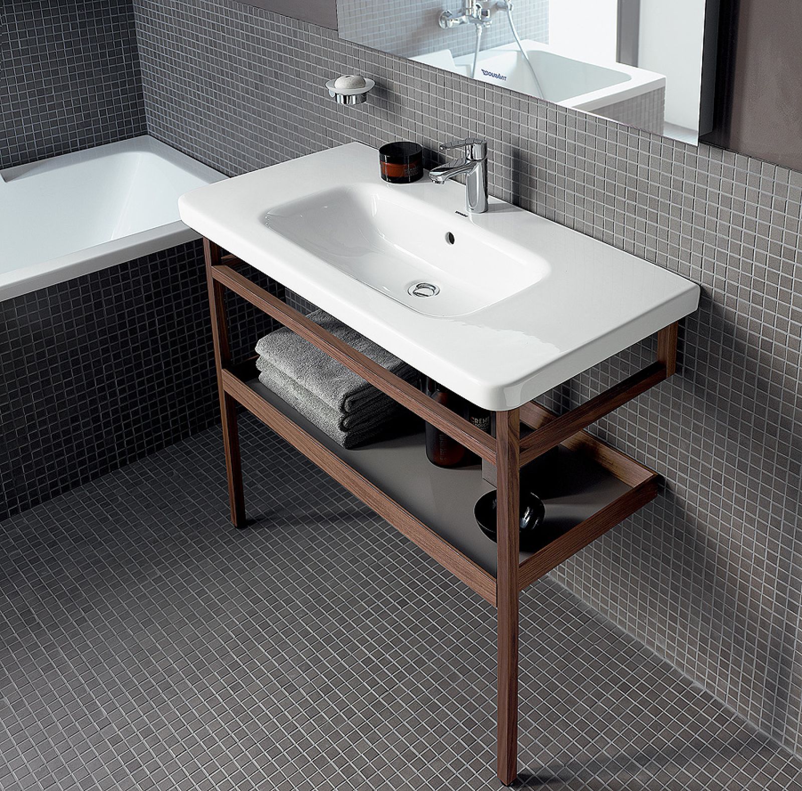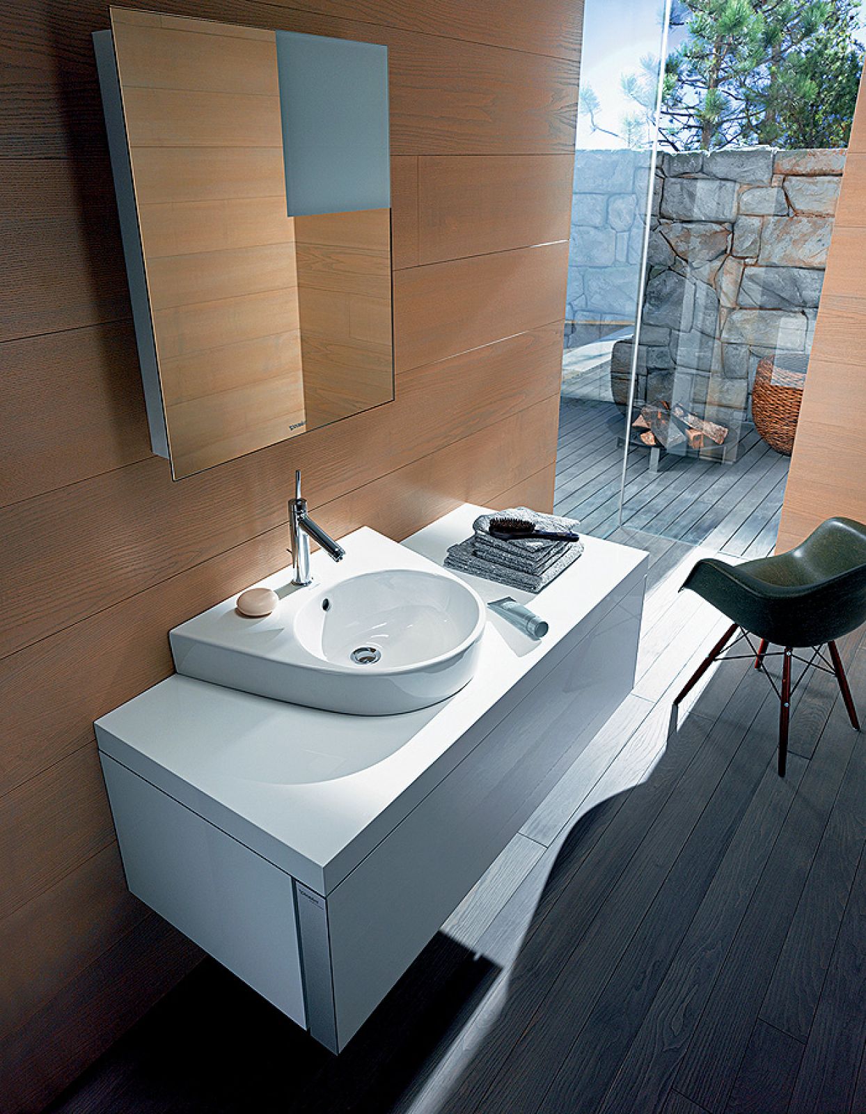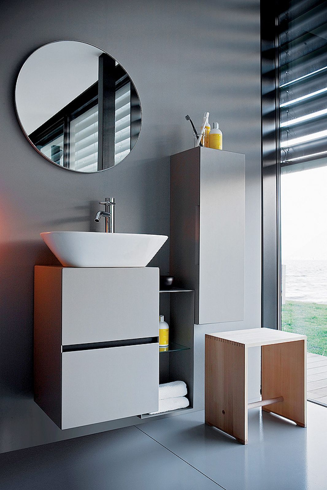 W tej roli idealnie sprawdzi się dizajnerski stołek albo „ludowy” zydelek (marki Bo Concept czy NAP). Schowki pojawiają się coraz częściej pod zabudową wanny, można też wokół niej zamontować półki. Ważny jest również materiał, z którego zrobiono meble. Na topie – nieśmiertelne drewno, z którego także projektuje się wanny. Ostatnio zaproponował je Japończyk Nendo. Do głosu coraz częściej dochodzi metal oksydowany na przykład mosiądzem. W takich projektach specjalizuje się włoska pracownia Imago Design, m.in. dla marki Altamarea. Wreszcie zaskakują baterie, które przypominają lampy (kolekcja Nendo dla Hansgrohe albo prysznice projektanta Diego Grandi).