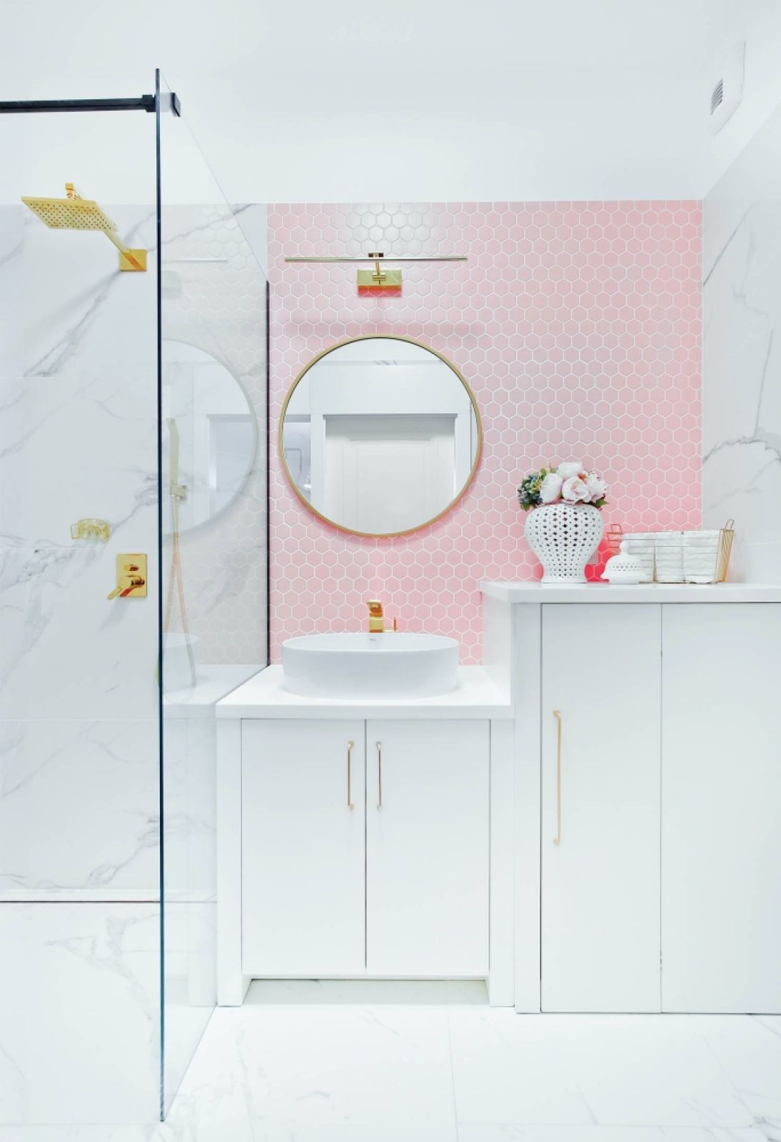 Jak połączyć mat z połyskiem w łazience?