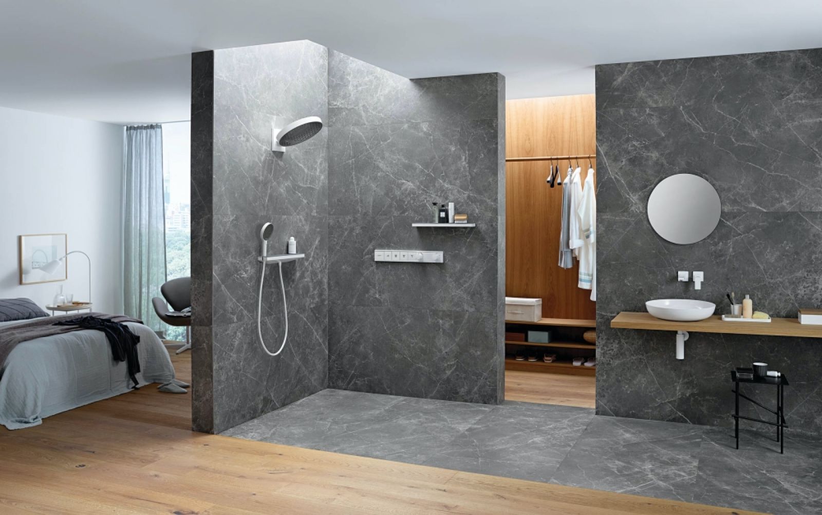 Kamień to ostatnio materiał numer jeden we wnętrzach. A najmodniejszy jest ten o wyrazistym rysunku. Teraz dobra wiadomość dla miłośników matowej elegancji. Naturalny kamień poddaje się obróbce – szczotkowaniu lub szlifowaniu – dzięki temu jego struktura robi się bardziej chropowata lub porowata, a przez to matowa, a rysunek staje się jeszcze bardziej wyrazisty. Takie wielkoformatowe płyty kamienne wycinane z ogromnych slabów świetnie nadają się do wykańczania ścian i podłóg w łazienkach.