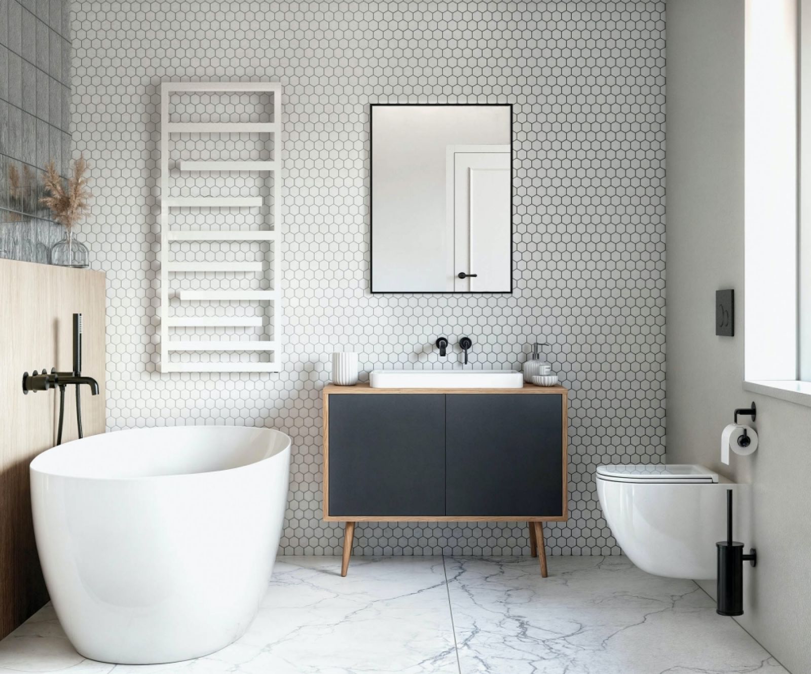 Pomysł na aranżację matowej łazienki – ocieplony minimalizm w nowoczesnym wydaniu
