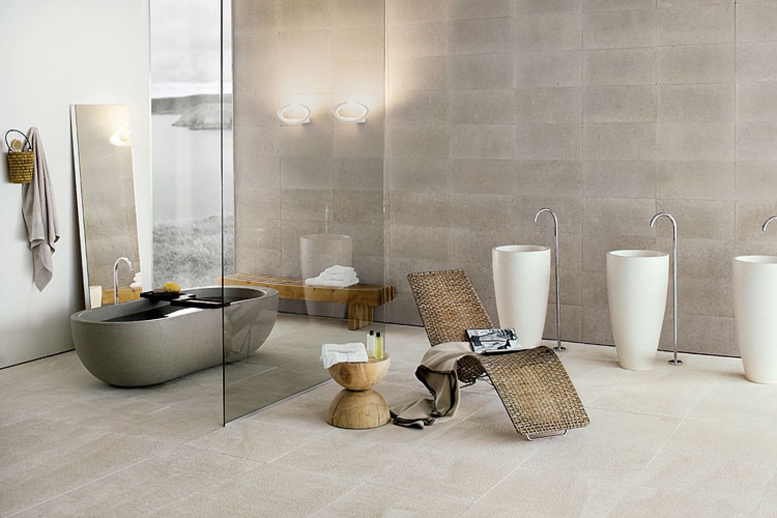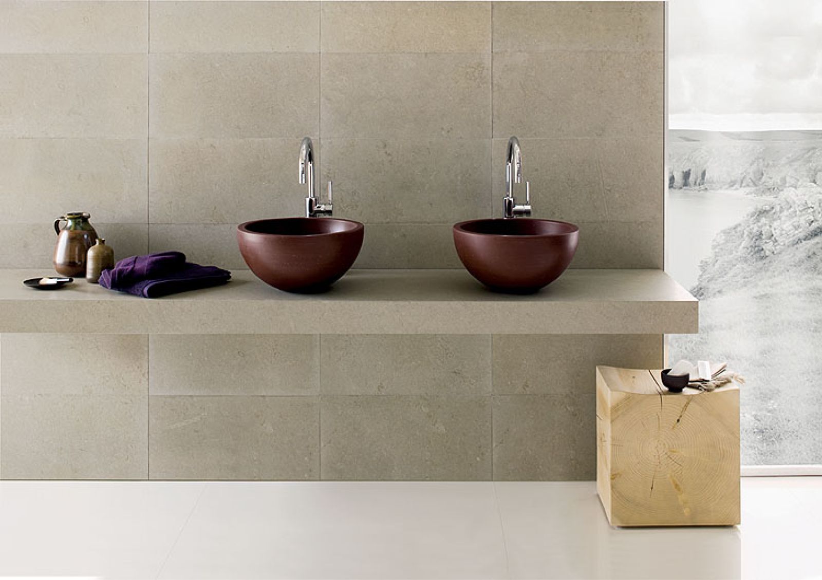 Łazienki Nespoliego i Novary można nazwać pomysłowym minimalizmem. Stonowane i szalenie proste (szarości i czernie, długi blat, zwykły zydelek, klasyczna armatura), ale każda kryje miłą niespodziankę. A to niebanalną w kształcie ceramikę, a to ciekawe materiały. Co do tych ostatnich, włoski duet gustuje w kamieniu – bazalcie (umywalka Nest), marmurze (wanna Duo) – oraz drewnie, (półeczki na wannę, stołki, ławki i szezlongi).