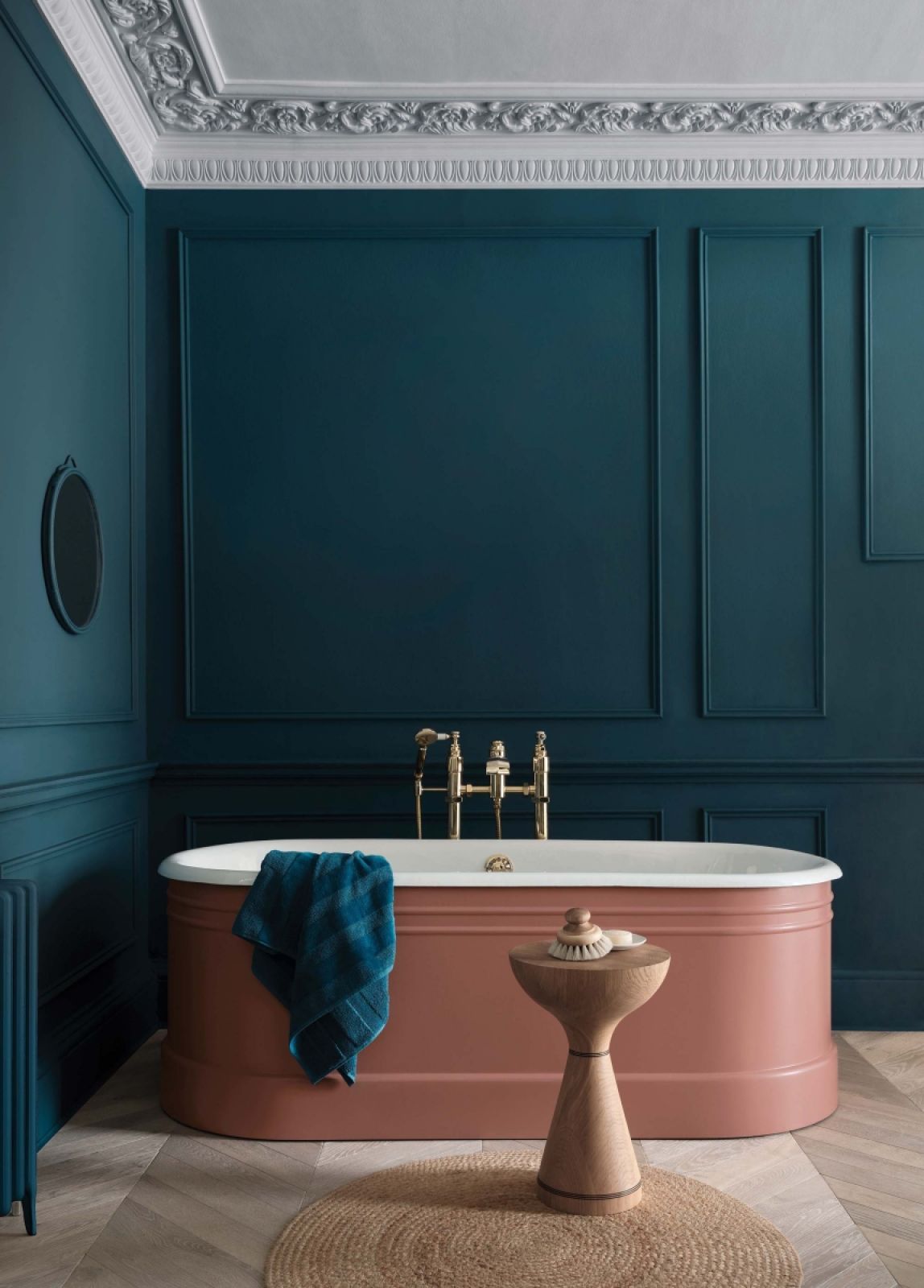 Pięknie uzupełniają je kasetony z drewna lub boazerie wykończone cokolikami i gzymsami. To coraz bardziej popularny sposób na ocieplenie i dekorację łazienkowych ścian – boazerie zastępują nieco już przereklamowane lamele. Są od nich bardziej eleganckie, stylowe i praktyczniejsze – to świetne tło dla wanny, ale odpowiednio zaimpregnowane sprawdzą się także wokół umywalki.