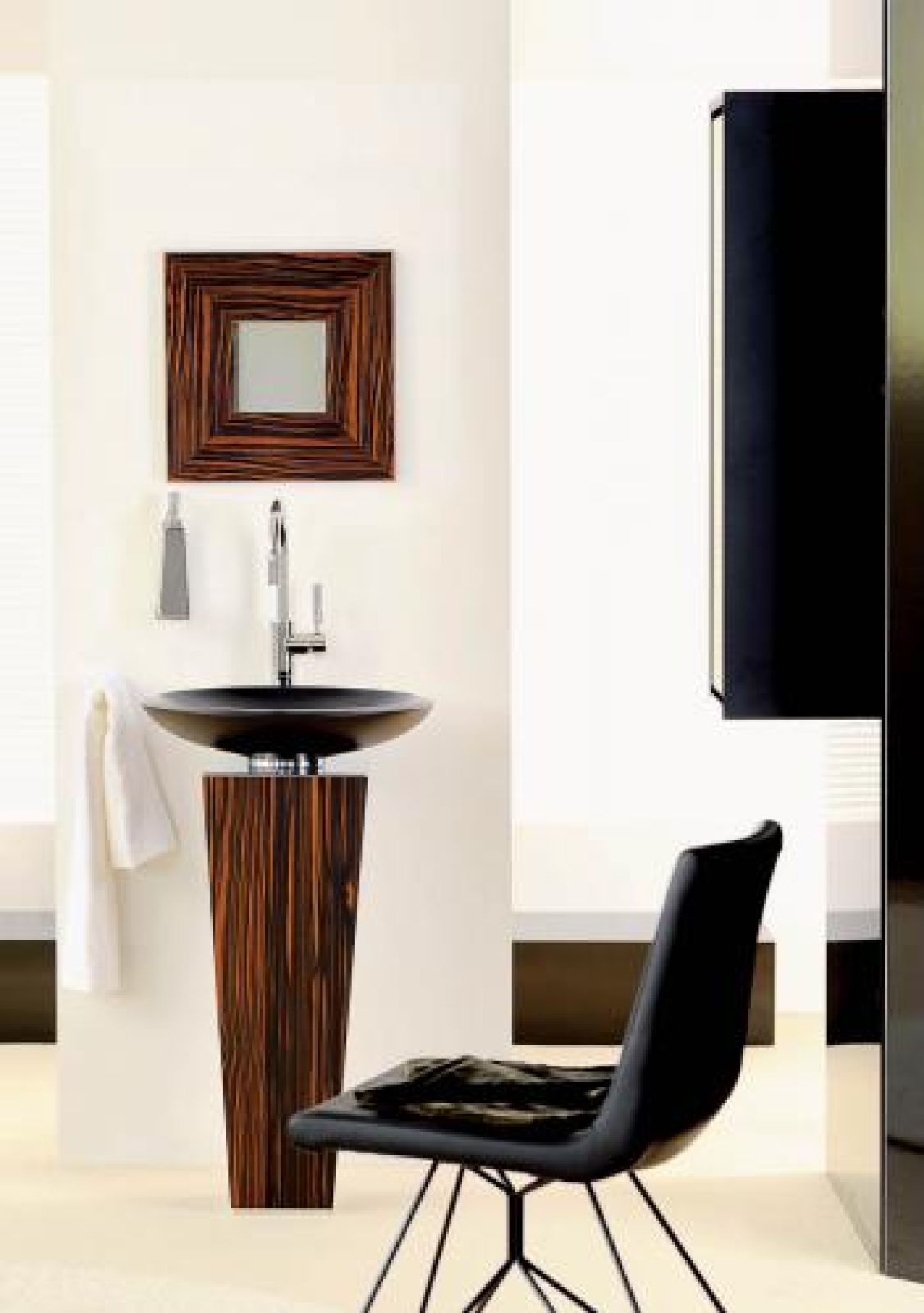 Warto zwrócić uwagę na te, które zrobiono z materiału innego niż ceramika, na przykład ze stali szlachetnej albo hartowanego giętego szkła. Jeśli zamierzamy urządzić łazienkę w stylu high-tech, będą jak znalazł ze swoim wyrafinowaniem. A co wybrać do ekologicznej, skandynawskiej, z pastelowymi kolorami i drewnianymi jasnymi meblami? Tylko misę z impregnowanego drewna z widocznymi słojami. Tekowe umywalki ma na przykład włoska firma Francoceccotti, ale w salonie kąpielowym inspirowanym kulturą arabską sprawdzi się metalowa, z błyszczącego młotkowanego niklu, z miedzi czy mosiądzu (Kohler, Stepim).