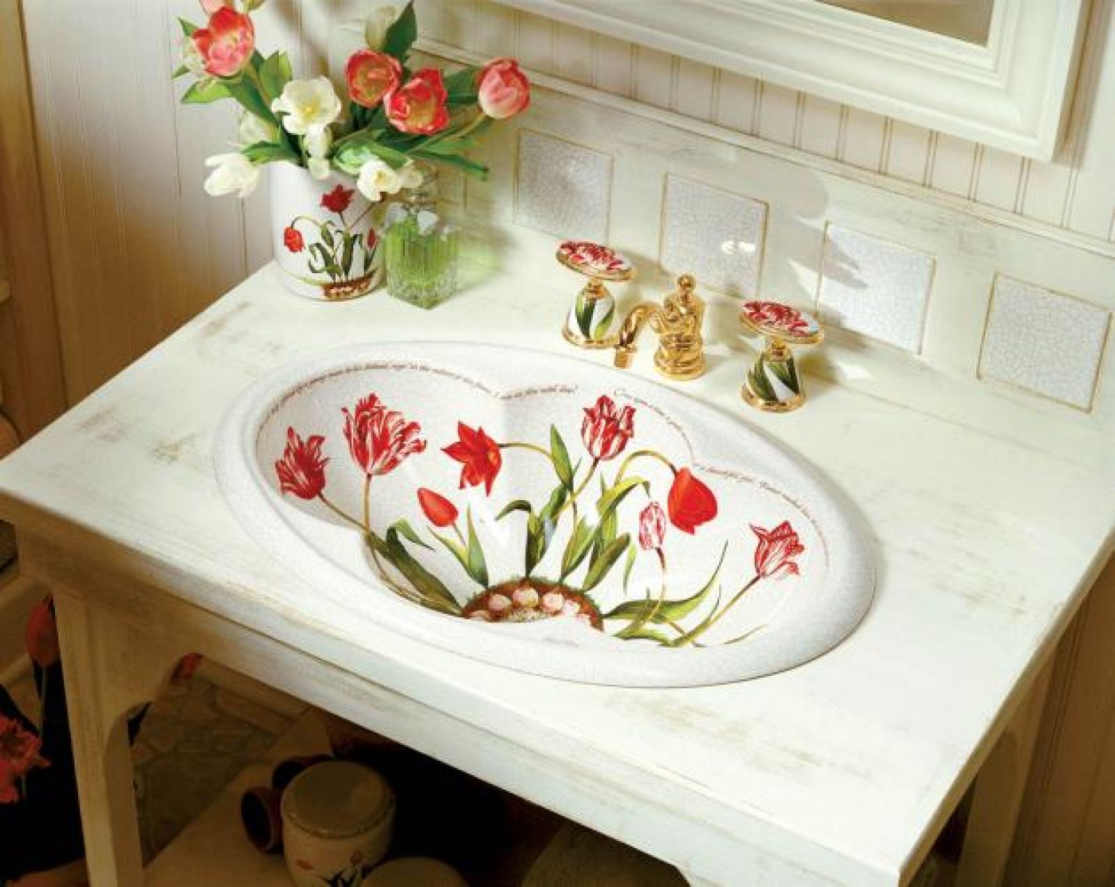 Można też postawić na kolor. Wyobraźmy sobie styl minimalistyczny, z prostą granatową ceramiką, albo japońską łazienkę z czarną umywalką malowaną w kwiaty wiśni. A jeśli zachwyca nas Daleki Wschód, do mebli z tekowego drewna będzie pasowała ceramiczna w kolorze burgunda. Piękne są też umywalki malowane. Do wiejskiego domu w polne kwiaty, a do luksusowego apartamentu – w złocone motywy.