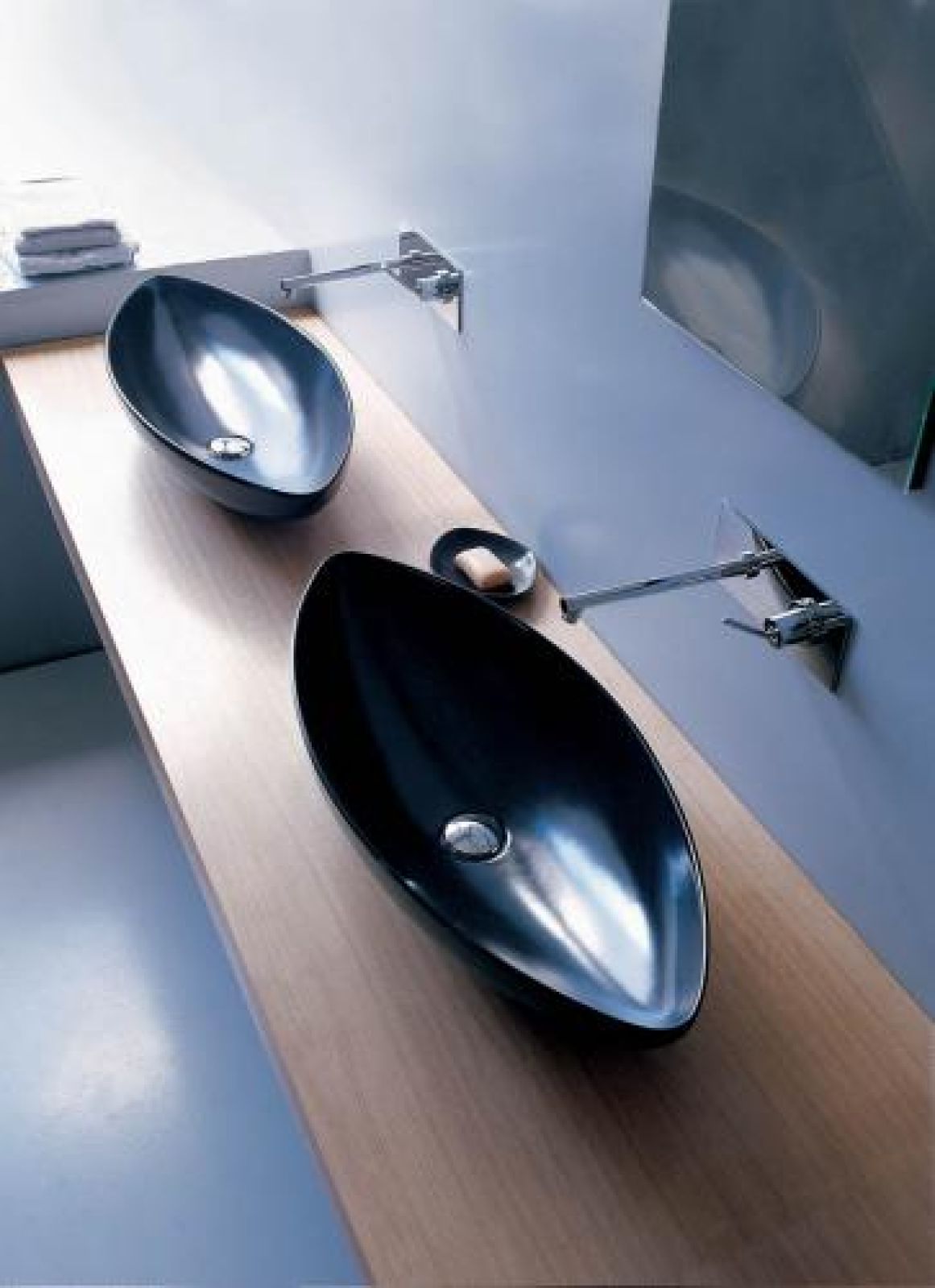 W taki oto sposób stałam się właścicielką zupełnie poprawnej łazienki, w której do niczego nie można się przyczepić. Teraz wymyśliłabym ją zupełnie inaczej. Pewnie ściany i podłoga pozostałyby w piaskowym odcieniu, ale ceramikę i baterie chciałabym mieć inne niż wszyscy. Jest w czym wybierać. Popatrzmy chociażby na umywalki, które mogą nadać łazience niezwykłości, ekstrawagancji, elegancji. Albo wszystkiego na raz.