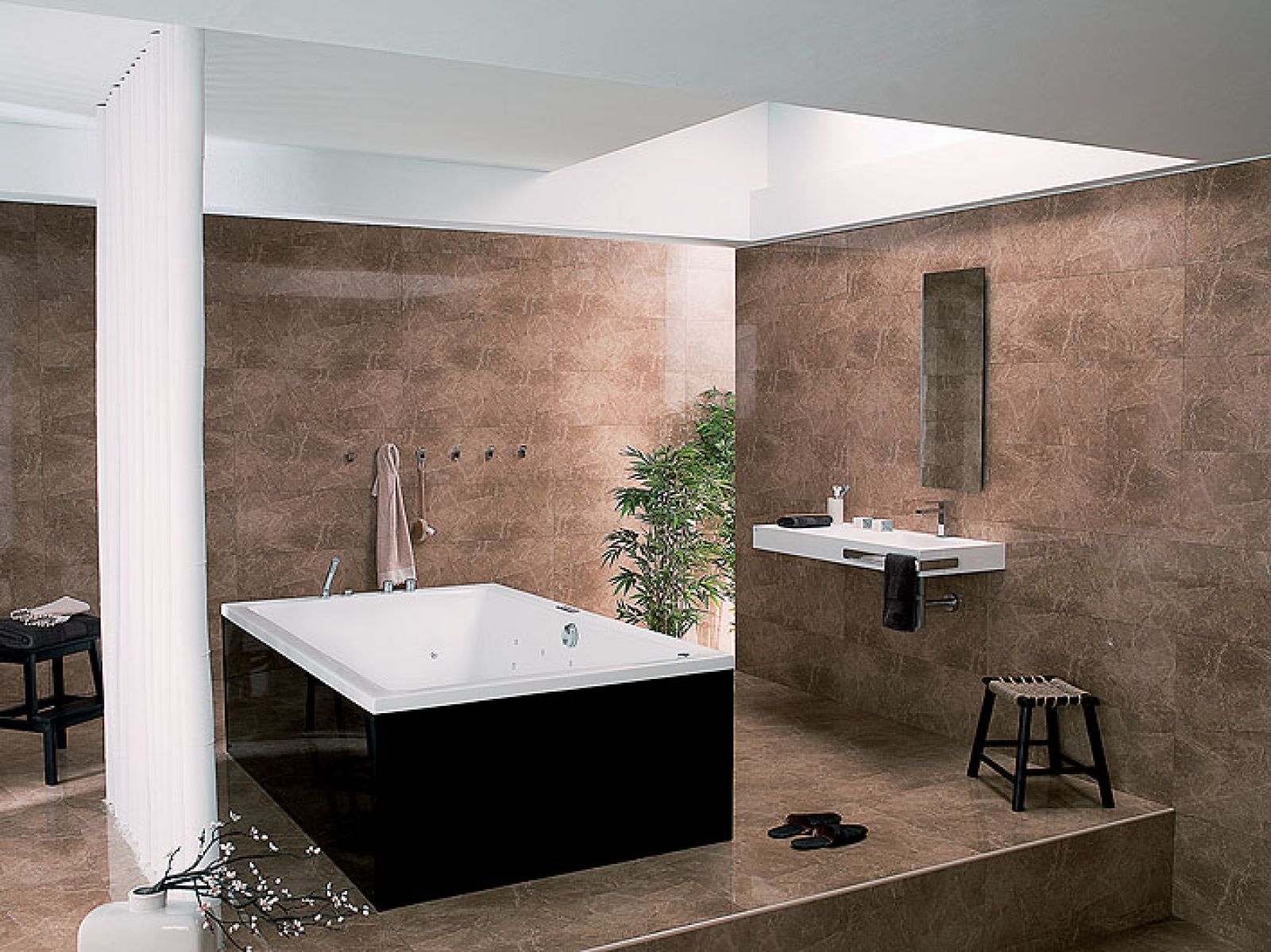 Przez setki lat najmodniejszym materiałem był kamień: a to marmur z Carrary, a to afrykański piaskowiec, a to egipski alabaster. Salony kąpielowe wykładano dużymi płytami, a krezusi inwestowali w mozaiki. Jakie? O tym można się przekonać w muzeum Bardo w Tunisie, gdzie zwieziono mozaiki z najpiękniejszych budowli starożytnego świata. Podobały się wszelkie motywy marynistyczne – rybacy na łódkach, bohaterowie zdobywający odległe lądy, bitwy morskie albo wzburzone fale. Patrycjusze gustowali w mozaikach zdobionych fauną i florą – od głowonogów po ryby, z opisanymi gatunkami, zupełnie jak w atlasach biologicznych, z tym że obrazy układano z malutkich kolorowych kosteczek. Do salonów kąpielowych doskonale pasowały też mozaikowe piękności w kąpieli albo w skupieniu pielęgnujące urodę.
